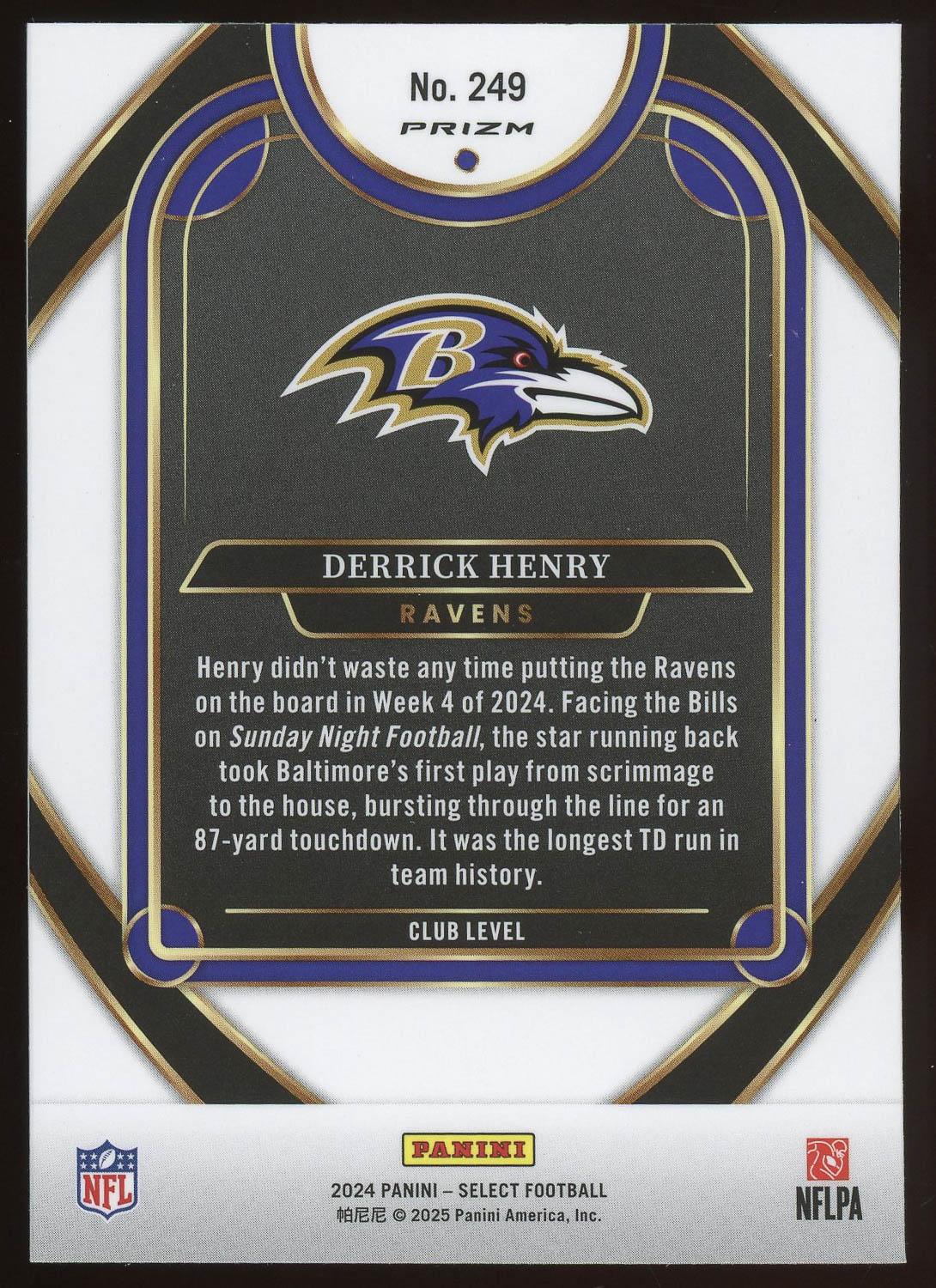 Derrick Henry Baltimore Ravens 2024 Panini Select Shock Wave Card. Please see pictures for details on the condition of this card.