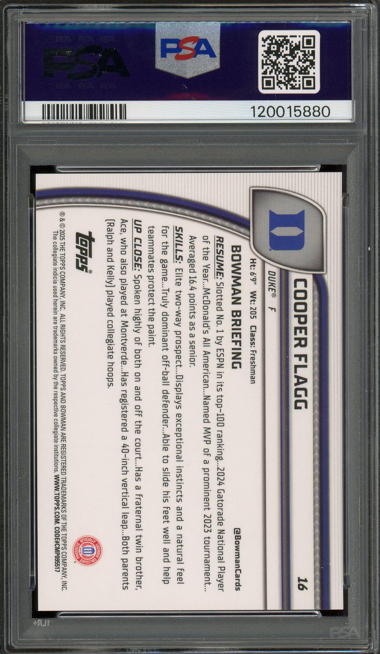 Cooper Flagg 2024 Bowman Chrome U Black & White Stealth 1st Bowman Refractor Card 34/49! PSA Gem Mint 10 POP 18!