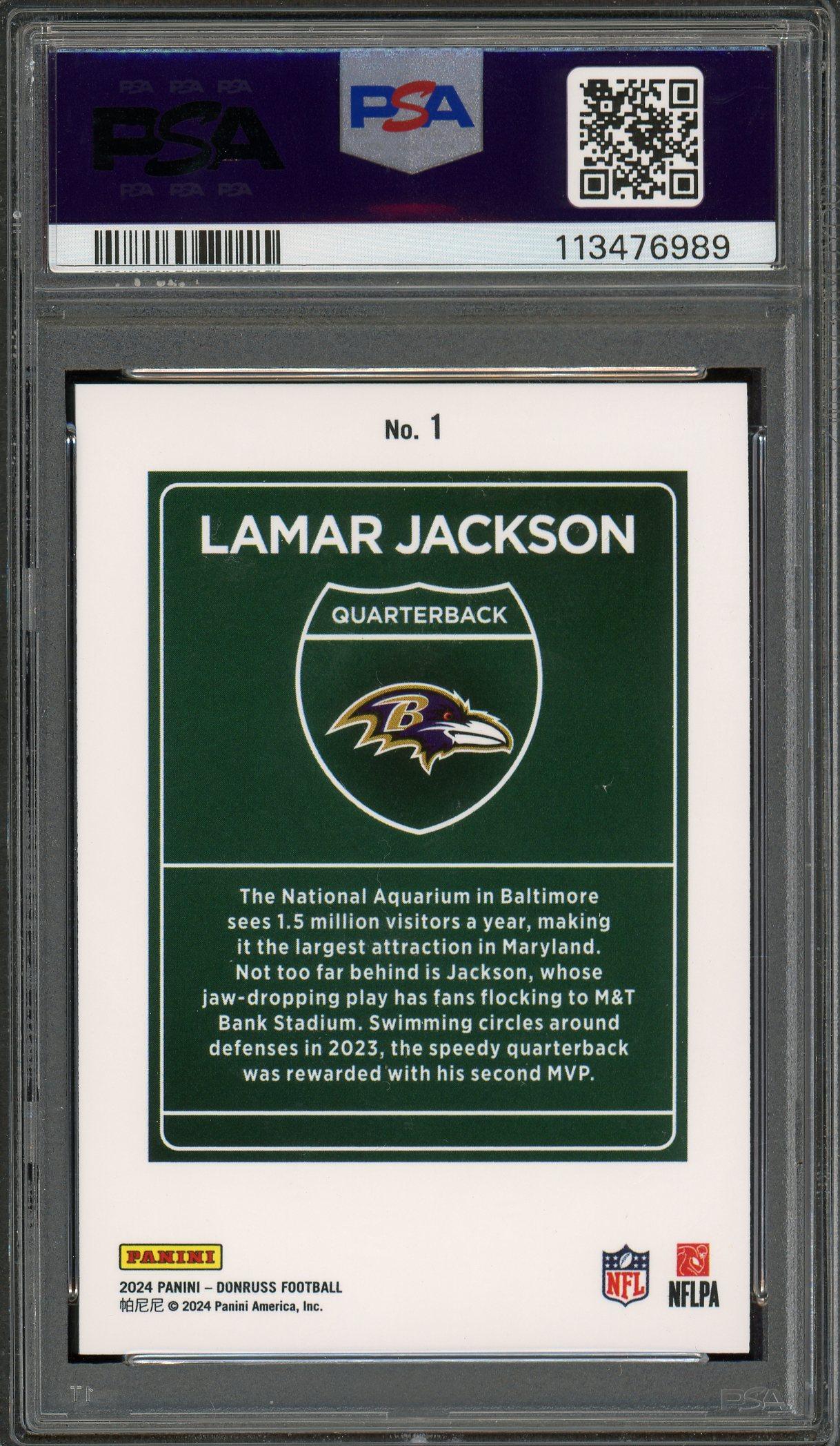 Lamar Jackson 2024 Donruss Downtown! Card #1 PSA 9