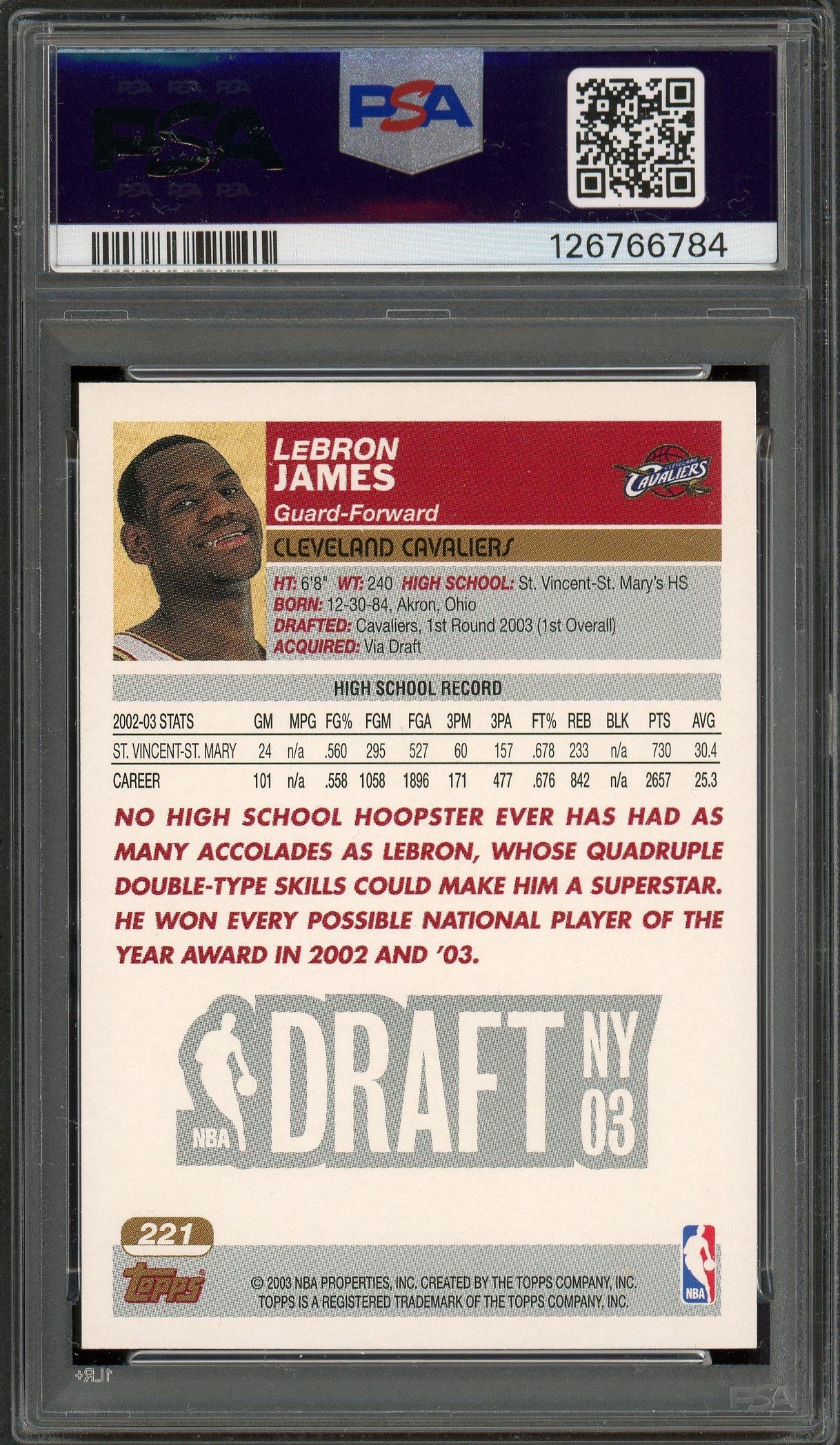 LeBron James 2003 Topps Rookie Card #221 PSA 8