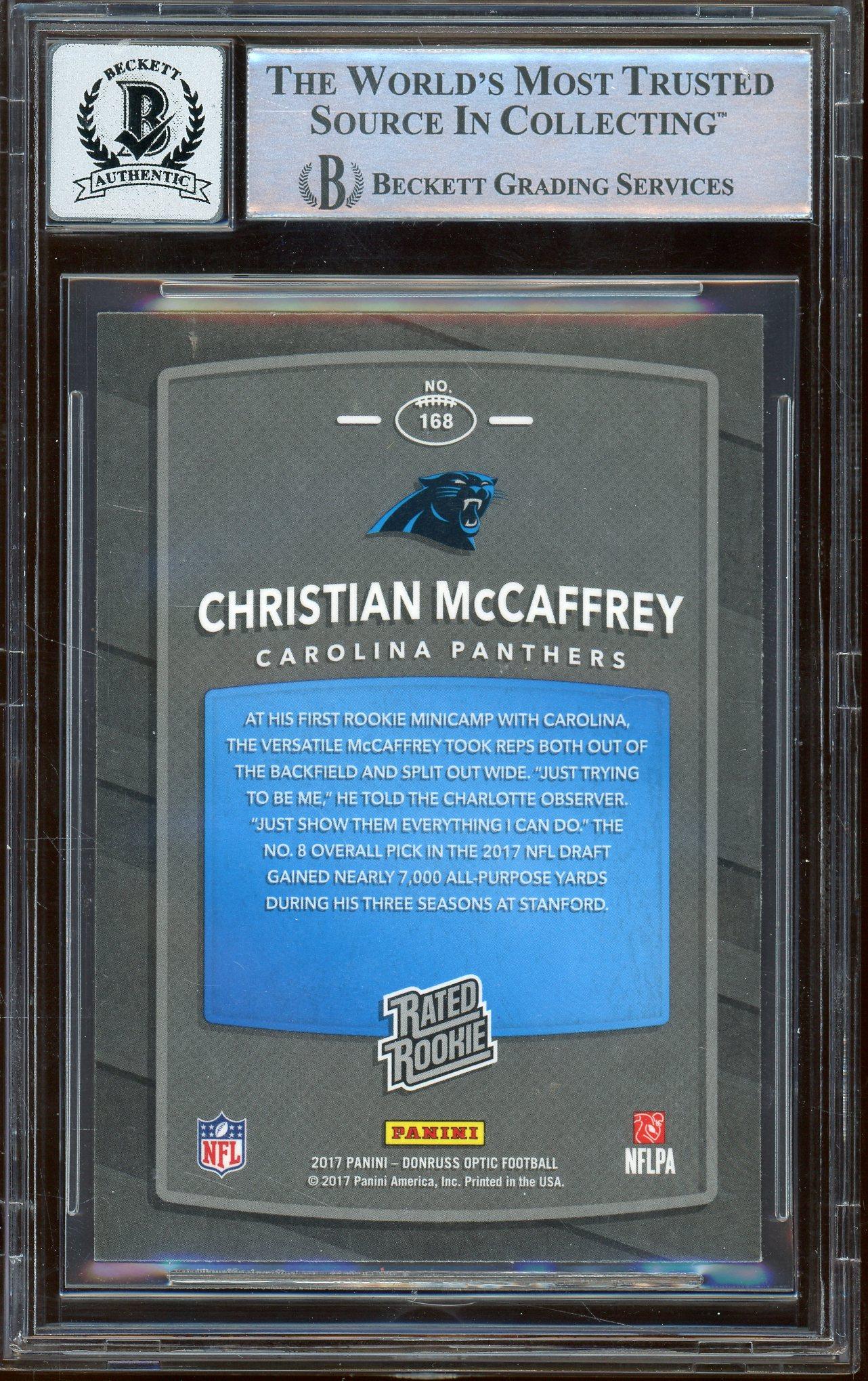 Christian McCaffrey 'Run CMC' Signed 2017 Panini Donruss Optic Rookie Card #168 BGS 9 with Graded 10 Autograph! (BAS and Fanatics Witness)