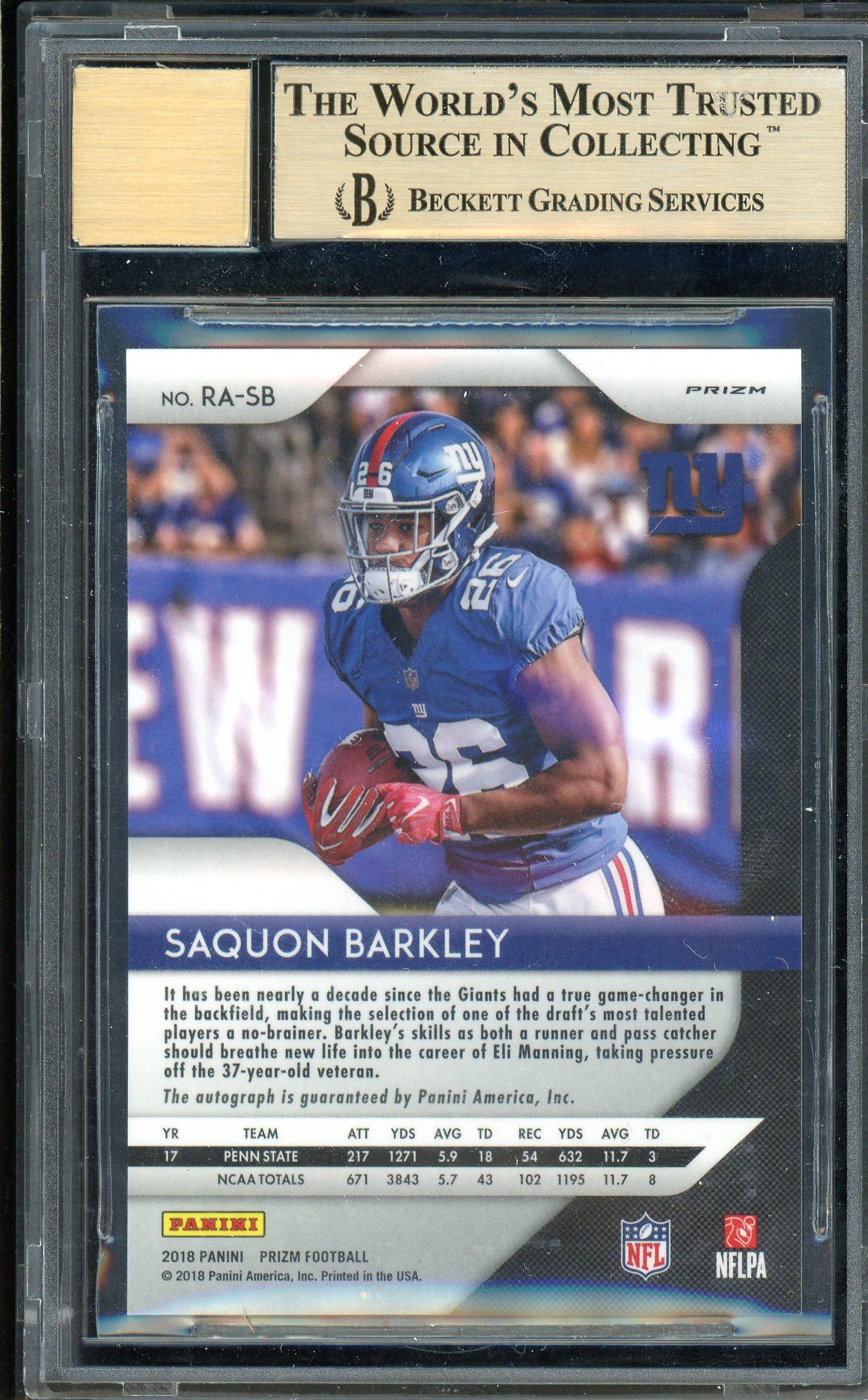 Saquon Barkley 2018 Panini Prizm Lazer Autograph Rookie Card BGS Gem Mint 9.5 Auto 10 POP 9!
