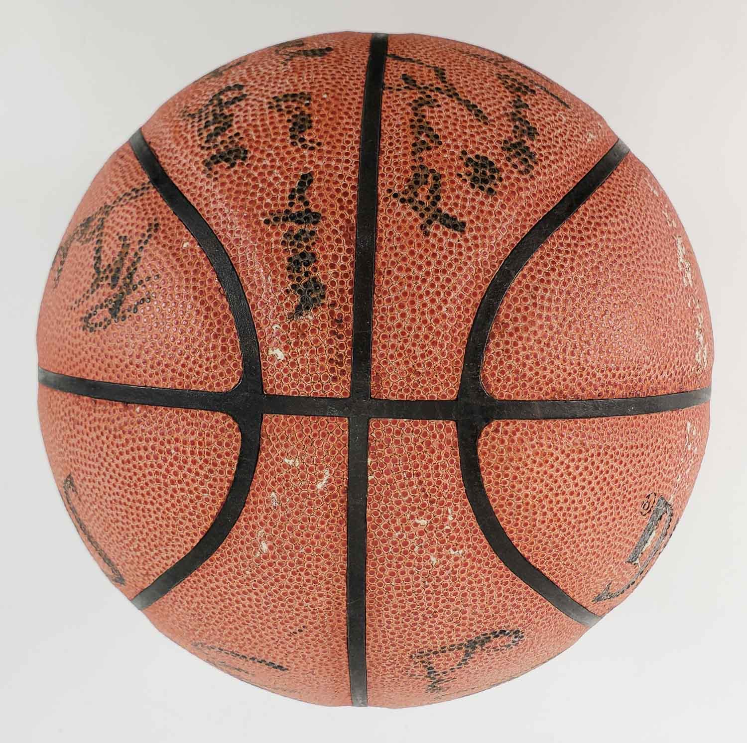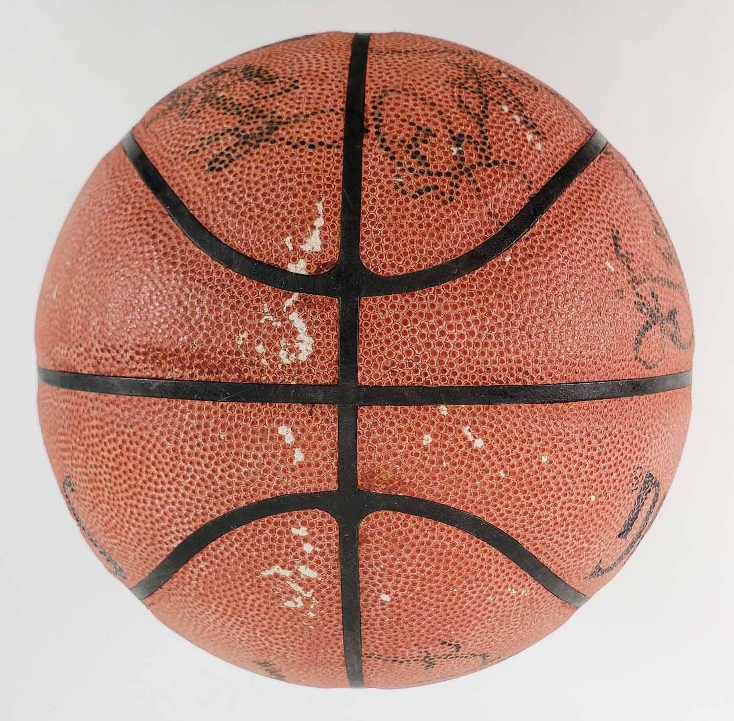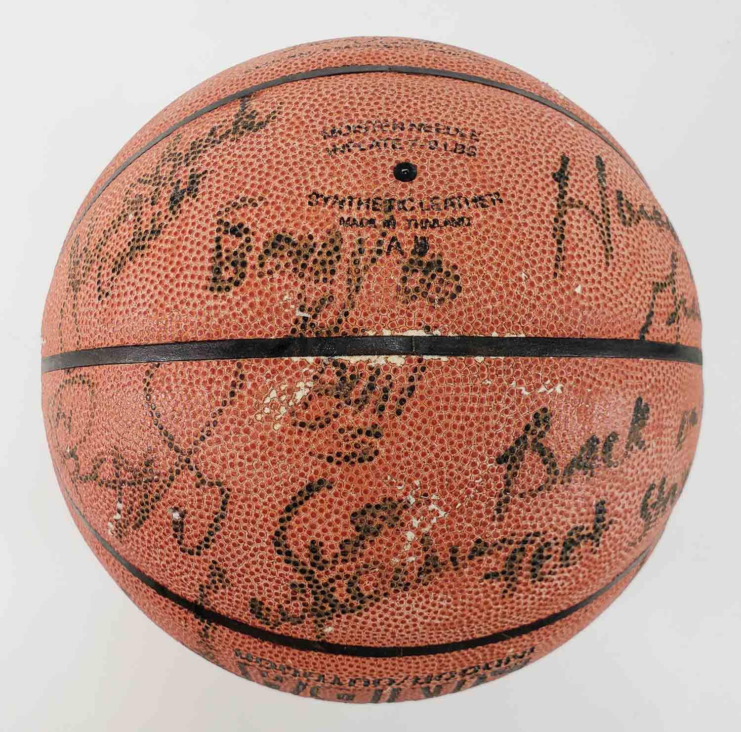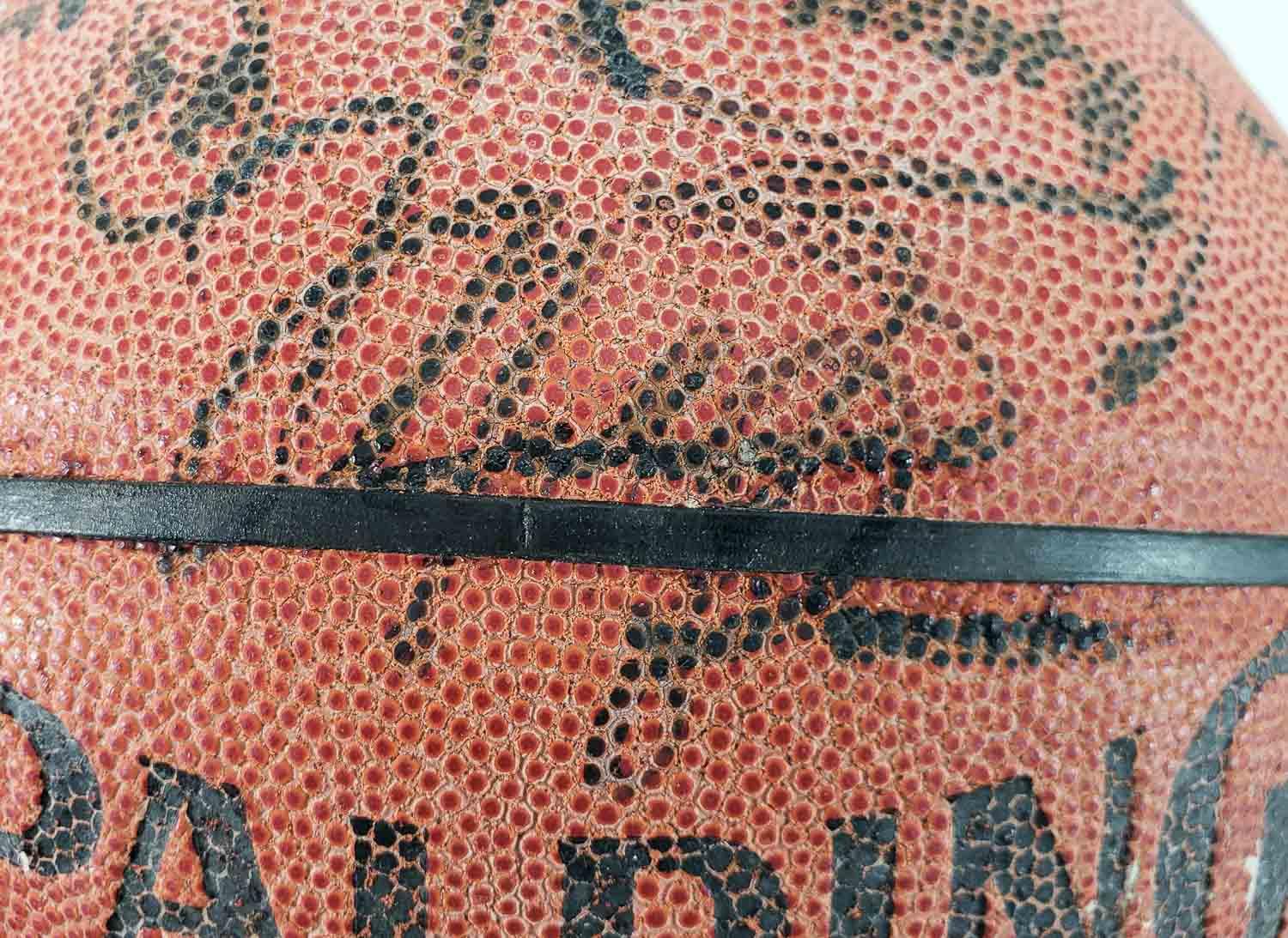 This autographed Spalding Indoor/Outdoor Basketball has been personally hand-signed by 12 members of the 1991-92 Chicago Bulls NBA Championship Team. Signature include; Michael Jordan, Phil Jackson (head coach), Horace Grant, BJ Armstrong, Craig Hodges, Will Perdue, Bill Cartwright, Johnny Bach (assisitant coach), Jim Cleamons (assistant coach) & Scott Williams. These autographs are certified by James Spence Authentication (JSA). It comes with the numbered hologram and matching Letter of Authenticity. Please see all pictures for the condition of the ball and signatures. The ball shows heavy signs of aging with cracking.