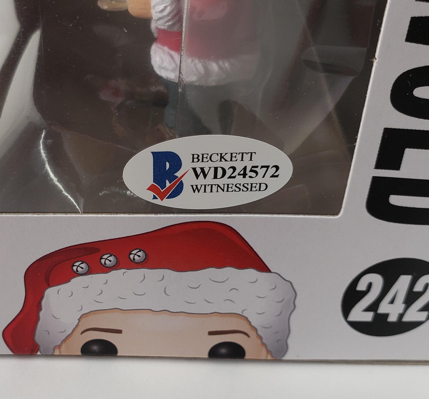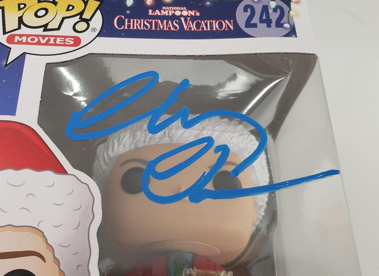 This autographed Funko Pop has been personally hand-signed by Chevy Chase from Christmas Vacation. This autograph is certified by Beckett Authentication Services (BAS) Witness Certification. That means that a Beckett representative was present when this item was signed. It comes with the numbered authentication hologram.