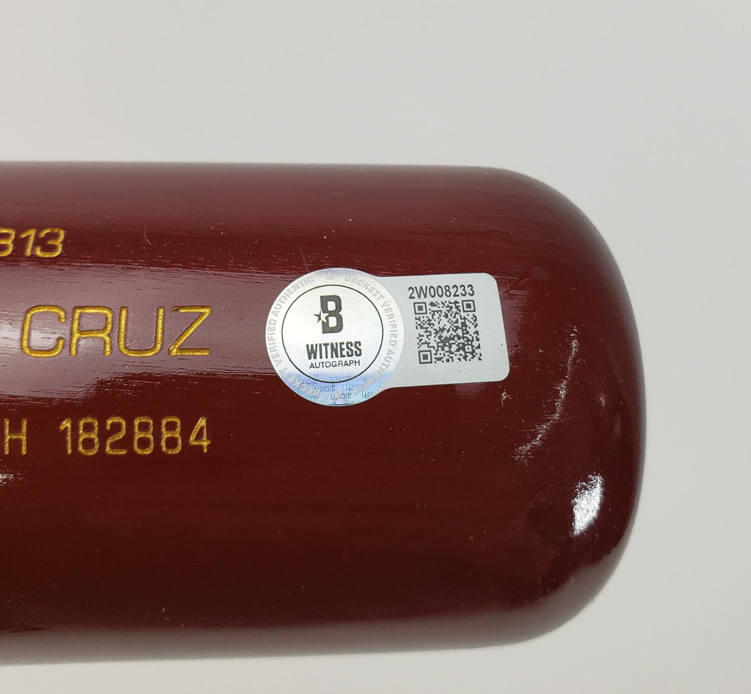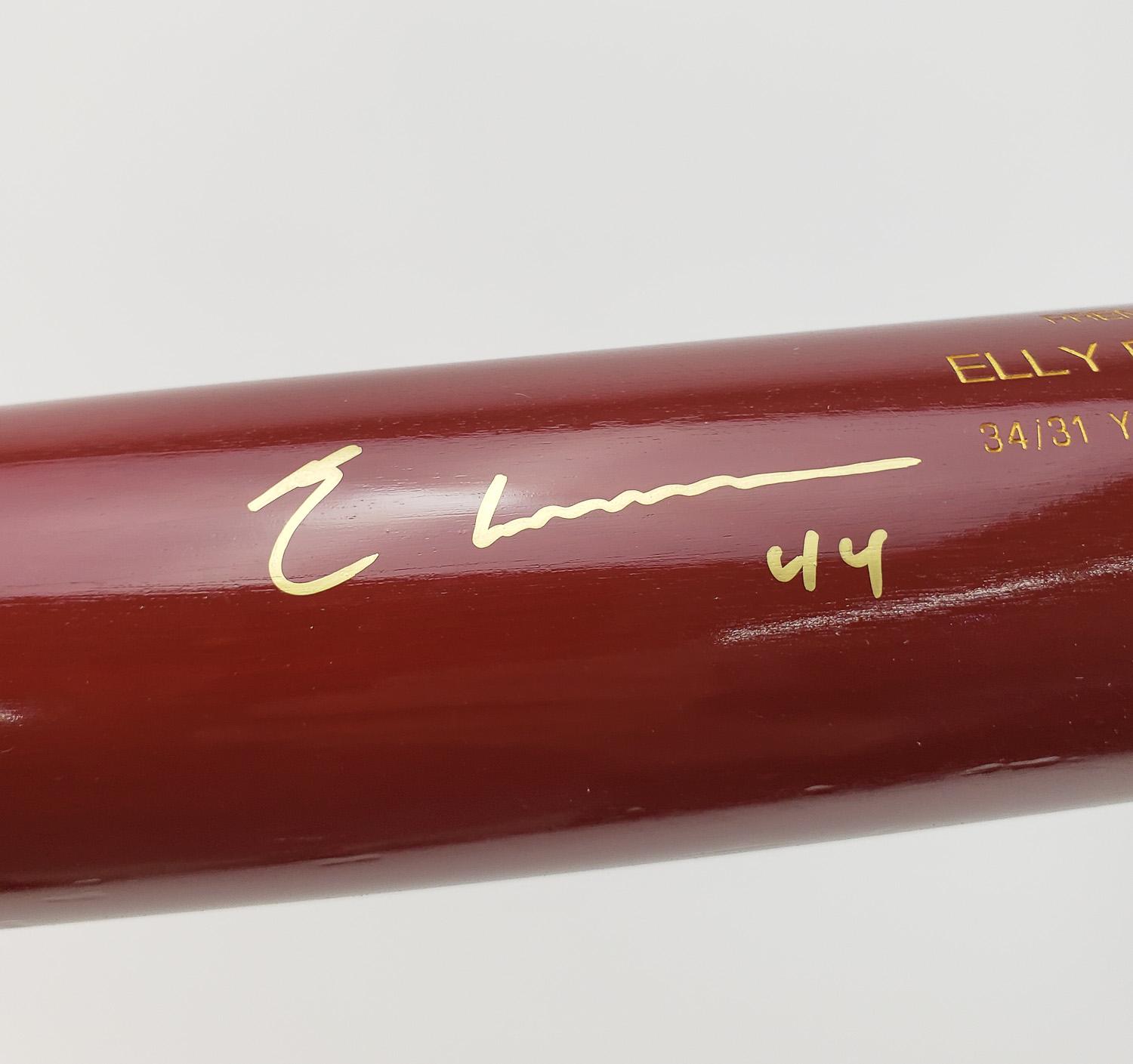 This autographed baseball bat has been personally hand-signed by Elly De La Cruz of the Cincinnati Reds. This autograph is certified by Beckett Authentication Services (BAS) Witness Certification. That means that a Beckett representative was present when this item was signed. It comes with the numbered authentication hologram with a QR code that verifies the authentication on the Beckett website.