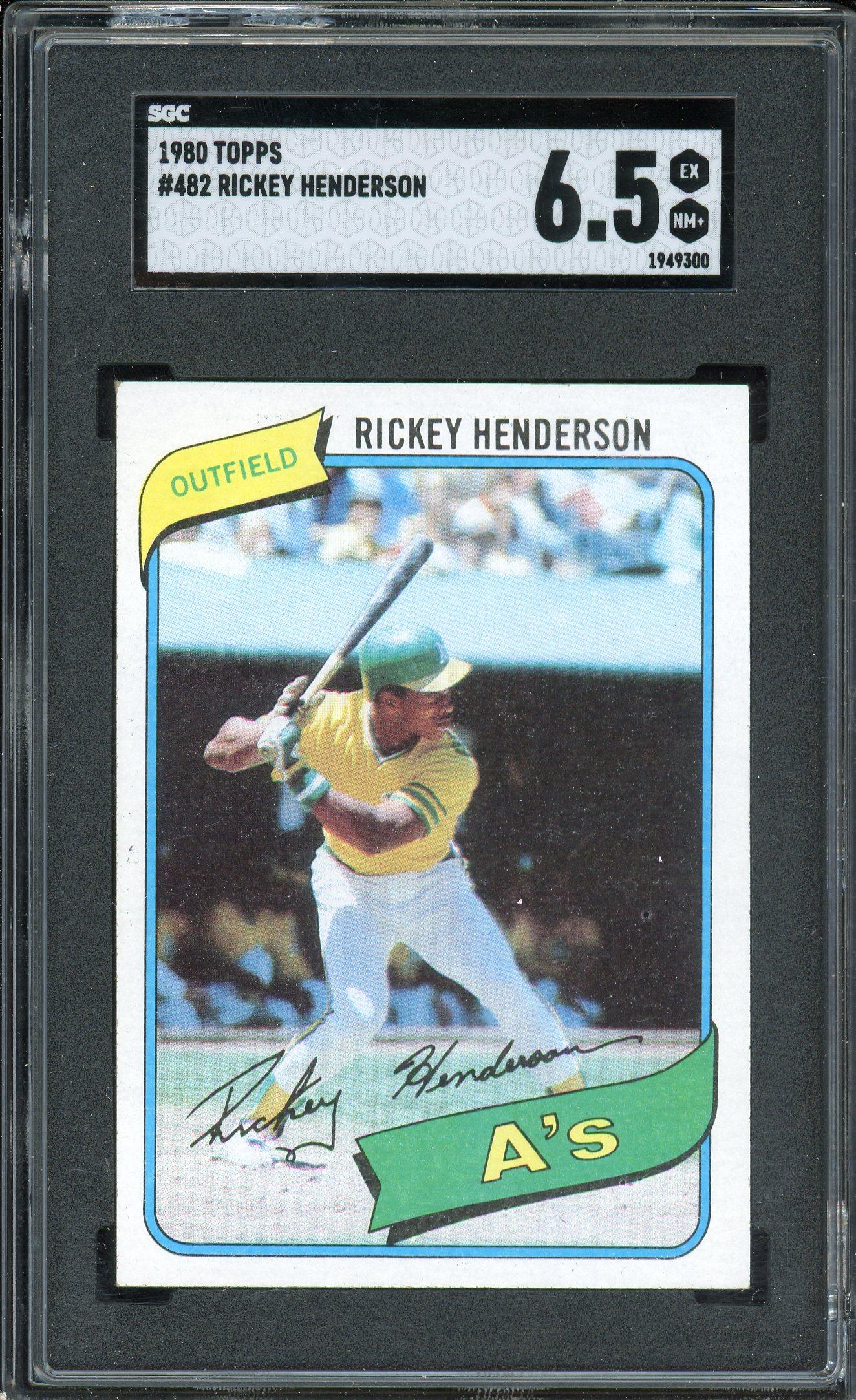 Rickey Henderson Oakland A's 1980 Topps Rookie Card #482. This card has been graded EX MT+ 6.5 by SGC.