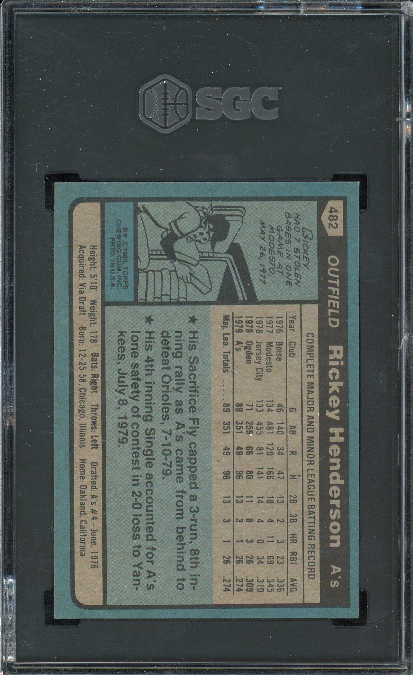 Rickey Henderson 1980 Topps Rookie Card #482 SGC 6.5