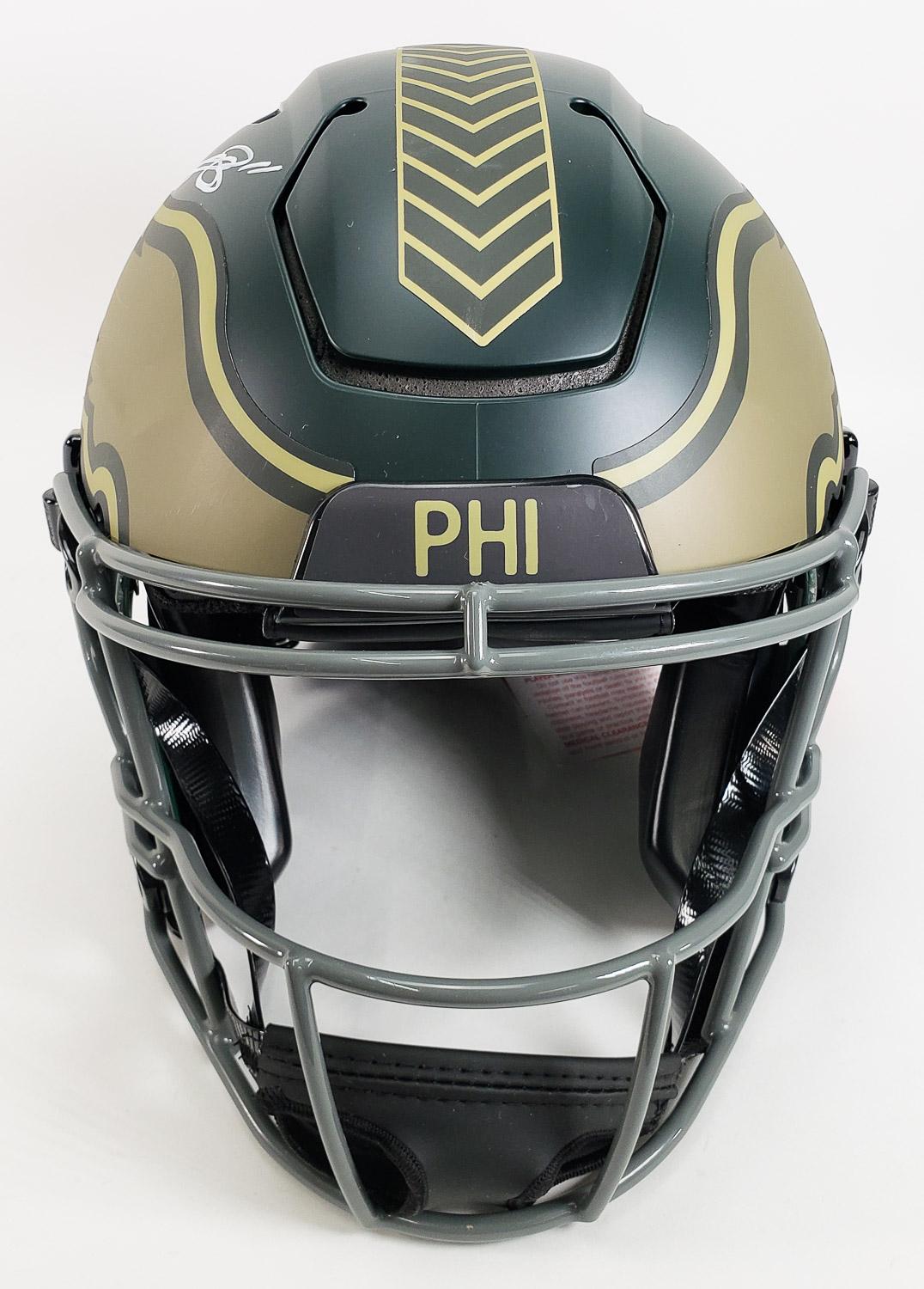 SpeedFlex Helmet: AJ Brown Signed Full Size Eagles 2025 Salute To Service On Field Authentic SpeedFlex Helmet (Beckett Witness Certified)