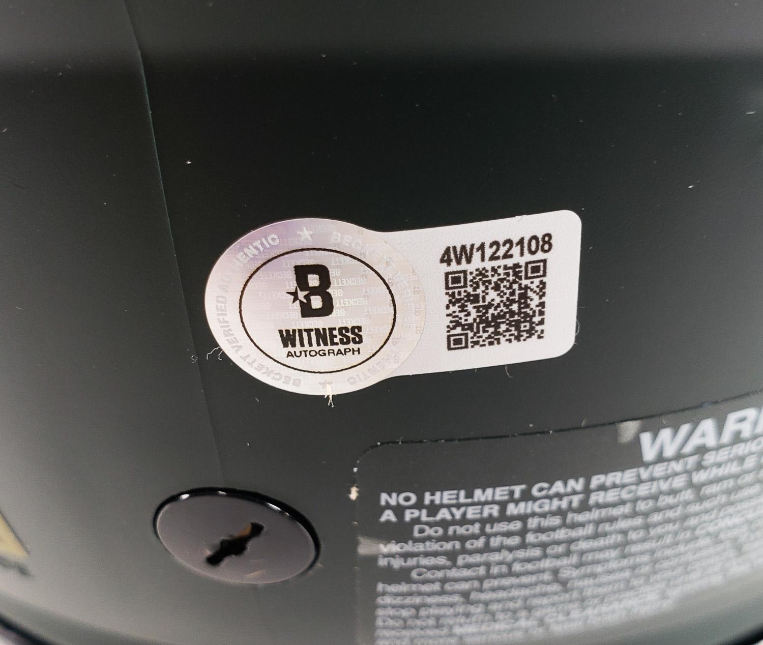 This autographed full size Riddell SpeedFlex authentic speed helmet has been personally hand-signed by AJ Brown of the Philadelphia Eagles. This autograph is certified by Beckett Authentication Services (BAS) Witness Certification. That means that a Beckett representative was present when this item was signed. It comes with the numbered authentication hologram with a QR code that verifies the authentication on the Beckett website.