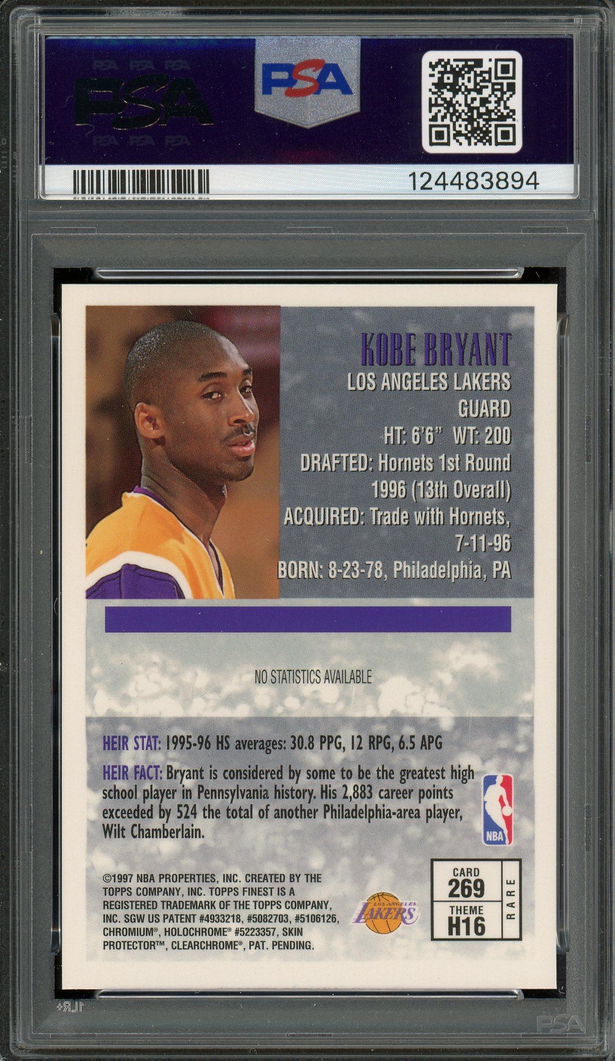 Kobe Bryant 1996 Topps Finest w/Coating Rookie Card #269 PSA 8