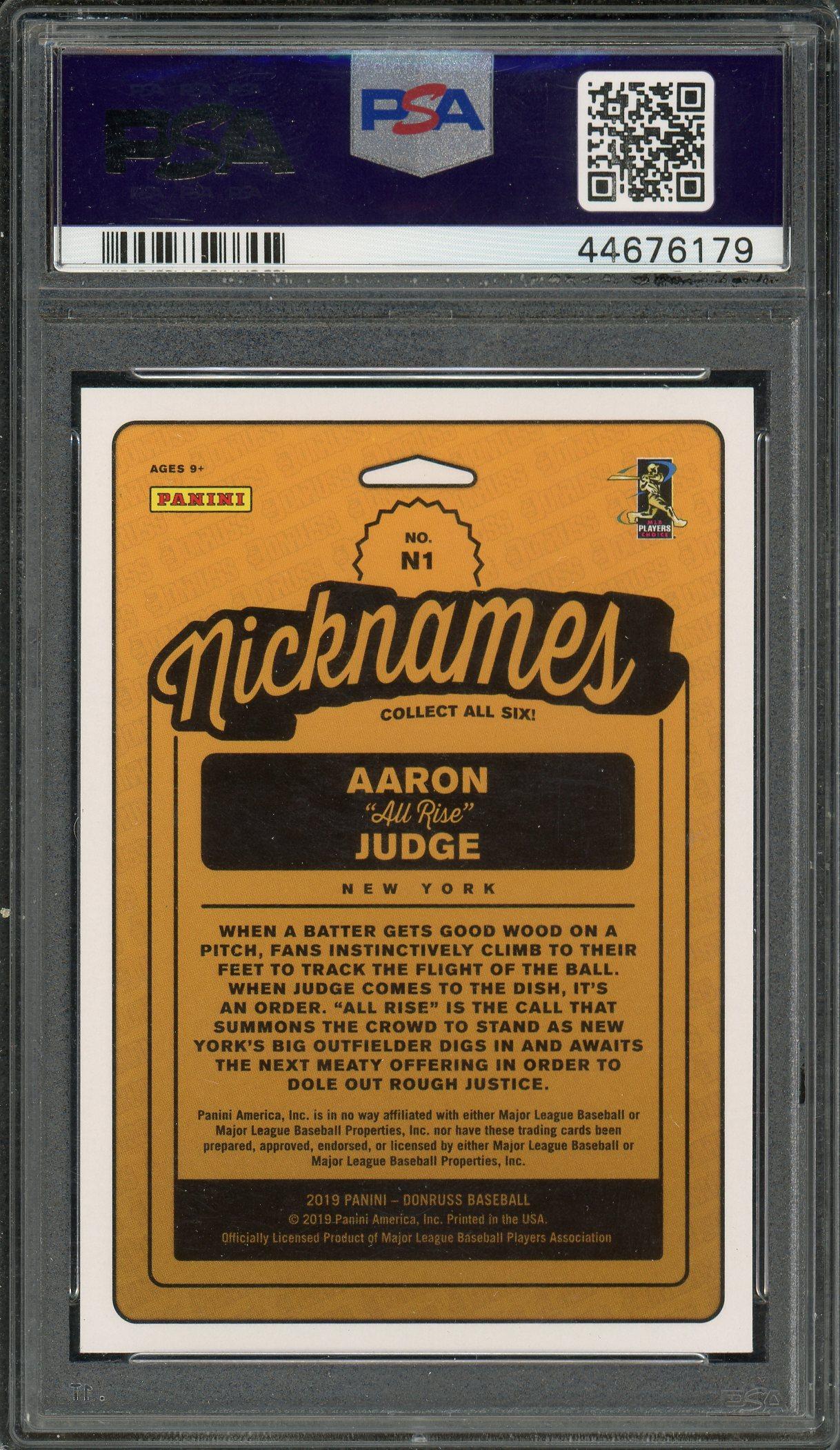 Aaron Judge 2019 Panini Donruss Nicknames Vector Card PSA Gem Mint 10 POP 4!