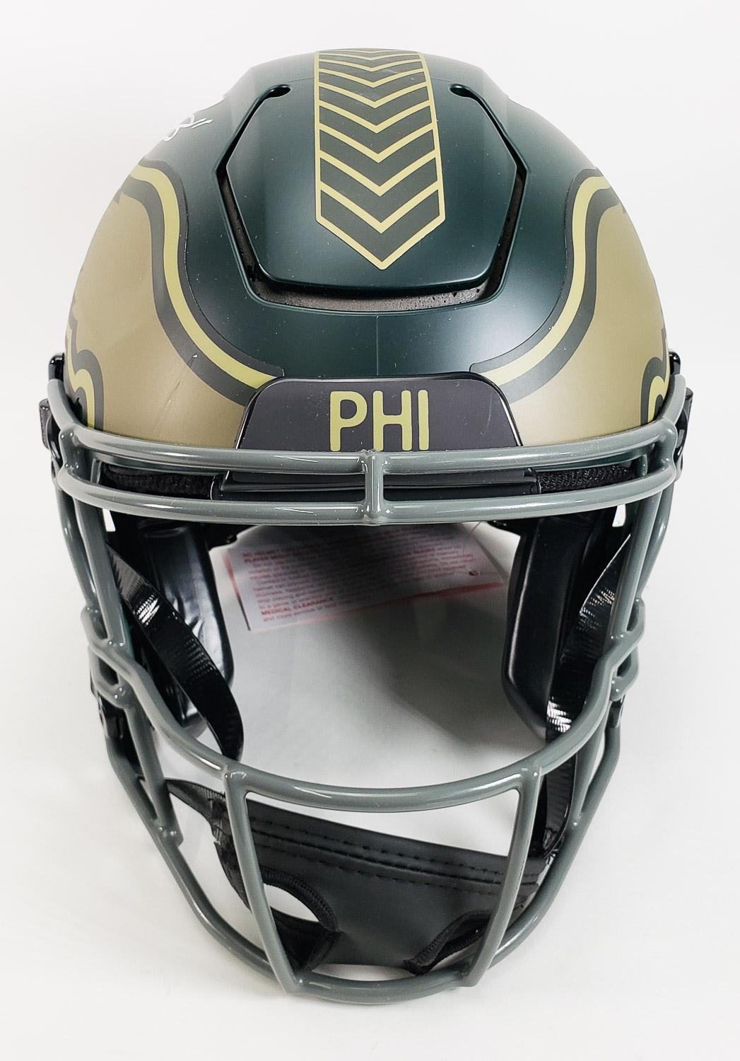 SpeedFlex Helmet: AJ Brown Signed Full Size Eagles 2025 Salute To Service On Field Authentic SpeedFlex Helmet (Beckett Witness Certified)