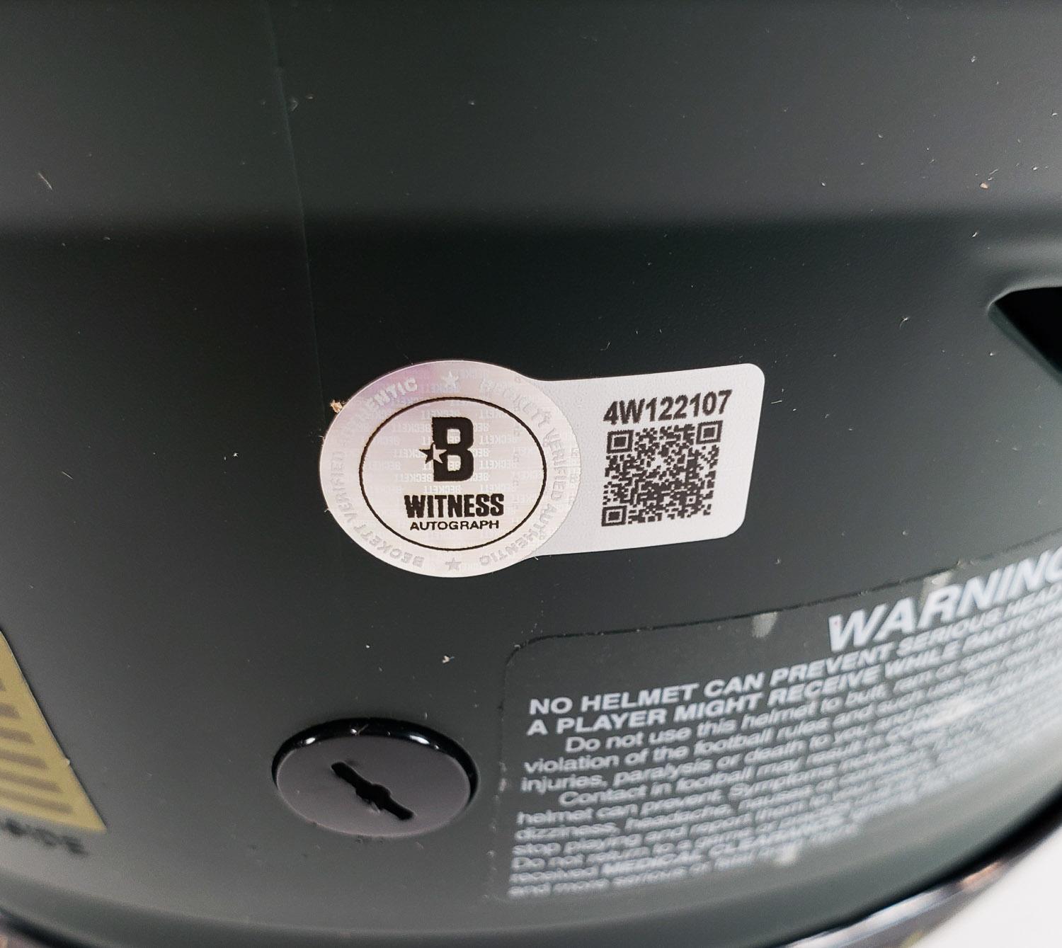 This autographed full size Riddell SpeedFlex authentic speed helmet has been personally hand-signed by AJ Brown of the Philadelphia Eagles. This autograph is certified by Beckett Authentication Services (BAS) Witness Certification. That means that a Beckett representative was present when this item was signed. It comes with the numbered authentication hologram with a QR code that verifies the authentication on the Beckett website.