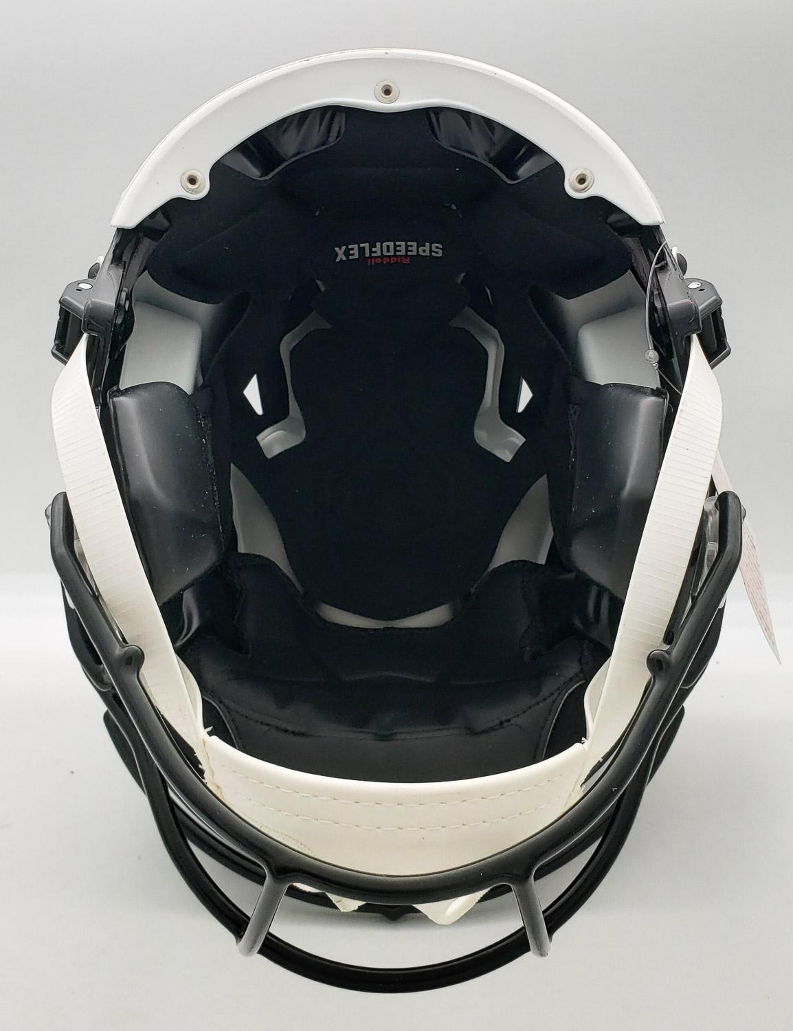 This autographed full size Riddell SpeedFlex authentic speed helmet has been personally hand-signed by Derrick Henry of the Baltimore Ravens. This autograph is certified by Beckett Authentication Services (BAS) Witness Certification. That means that a Beckett representative was present when this item was signed. It comes with the numbered authentication hologram with a QR code that verifies the authentication on the Beckett website.