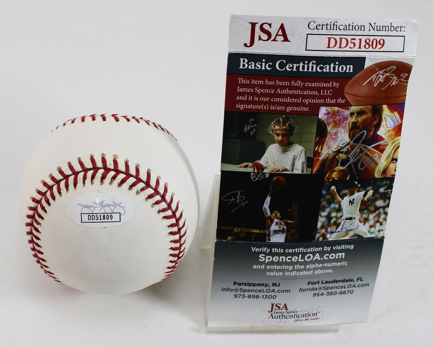 This autographed baseball has been personally hand-signed by Ichiro Suzuki of the Seattle Mariners. This autograph is certified by James Spence Authentication (JSA). It comes with the numbered hologram and matching Certificate of Authenticity. Please see all photos regarding the condition of this baseball.