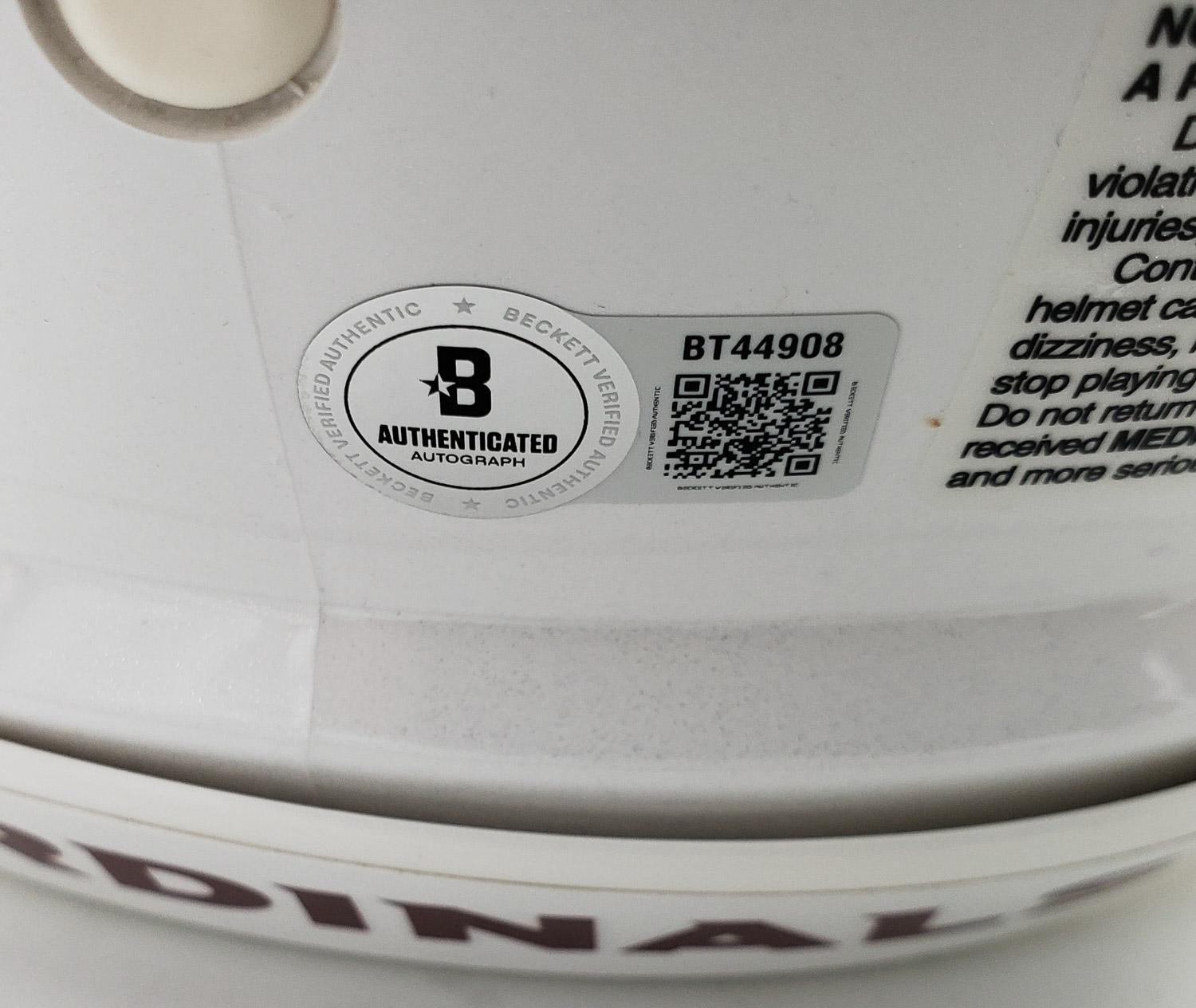 This autographed full size helmet has been personally hand-signed by DeAndre Hopkins of the Arizona Cardinals. This autograph is certified by Beckett Authentication Services (BAS) Certification. It comes with the numbered authentication hologram with a QR code that verifies the authentication on the Beckett website.