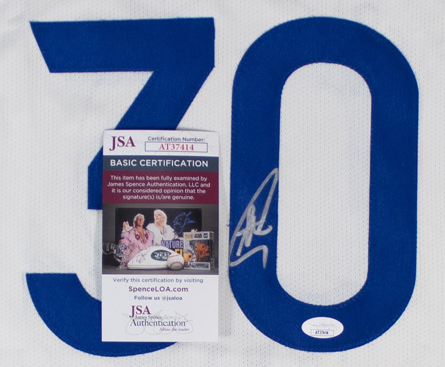 This autographed Nike replica Swingman jersey has been personally hand-signed by Stephen Curry of the Golden State Warriors. This autograph is certified by James Spence Authentication (JSA). It comes with the numbered hologram and matching Certificate of Authenticity.