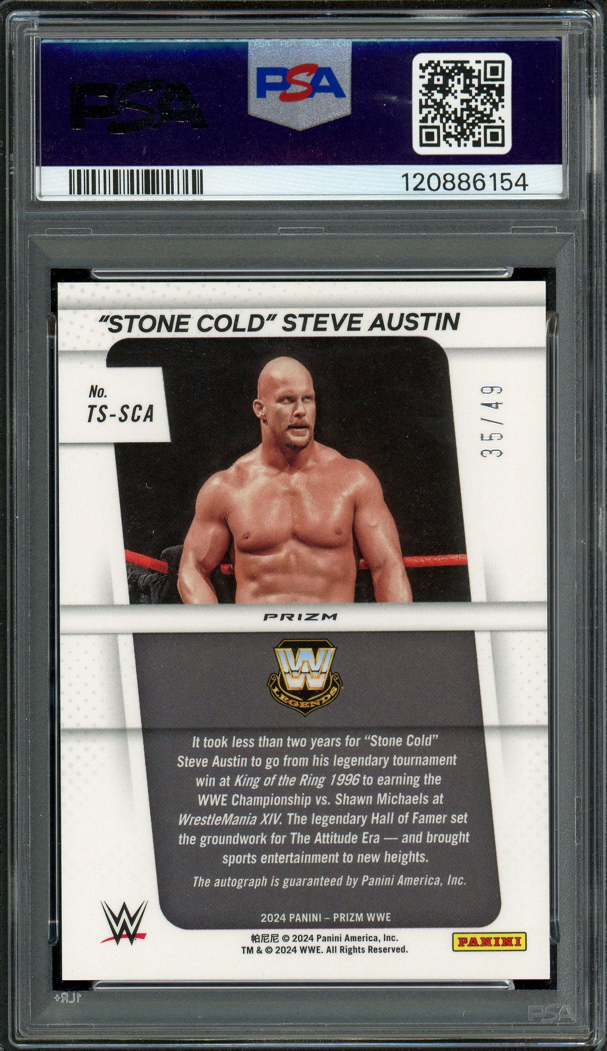 Stone Cold Steve Austin 2024 Panini Prizm WWE Throwback Blue Prizm Signature Autograph Card 35/49! PSA Gem Mint 10 Auto 10 POP 2!