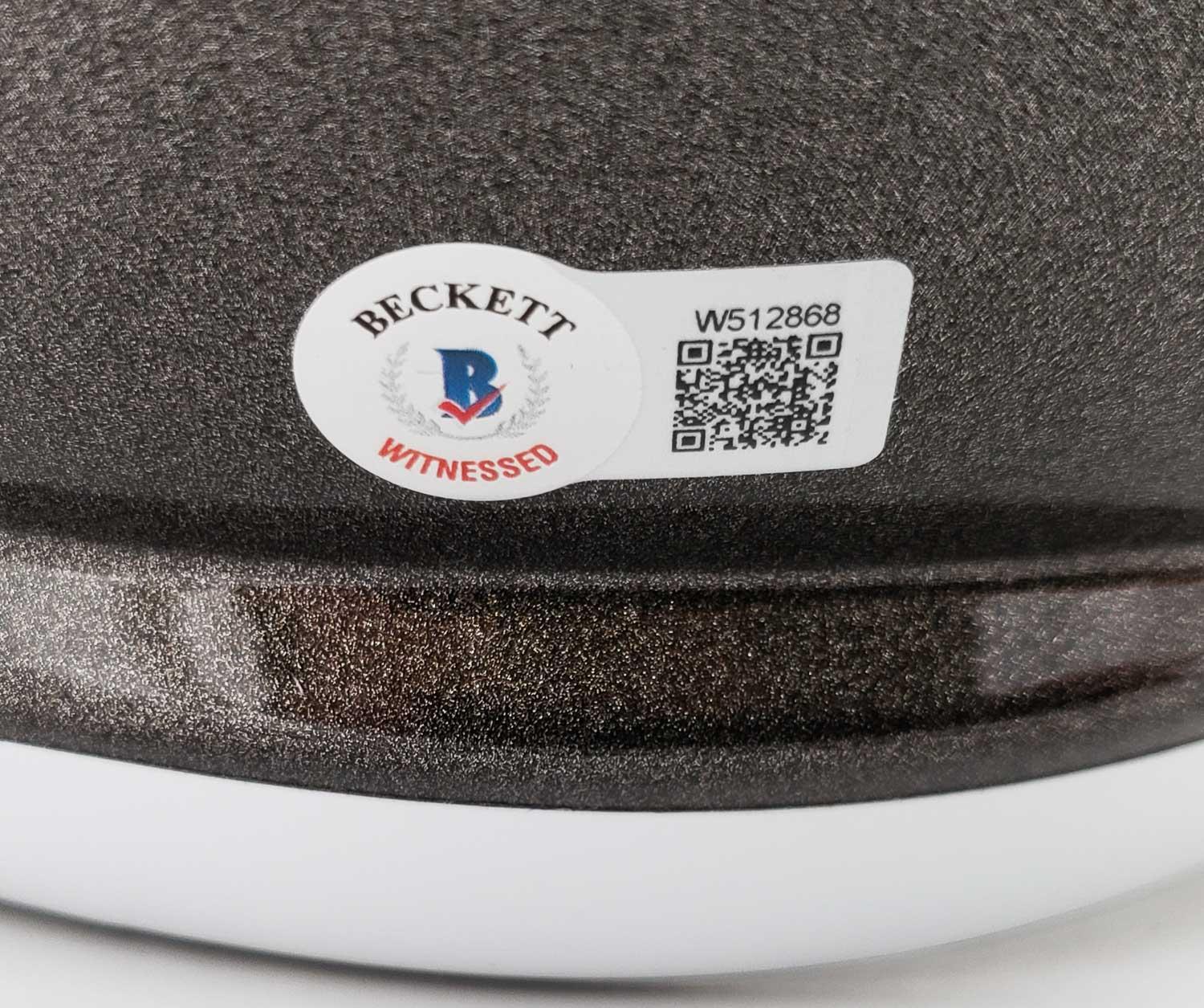 This autographed full size helmet has been personally hand-signed by Mike Alstott, Warren Sapp, Derrick Brooks, Ronde Barber, Brad Johnson & Dexter Jackson of the Tampa Bay Buccaneers. These autographs are certified by Beckett Authentication Services (BAS) Witness Certification. That means that a Beckett representative was present when this item was signed. It comes with the numbered authentication hologram with a QR code that verifies the authentication on the Beckett website.