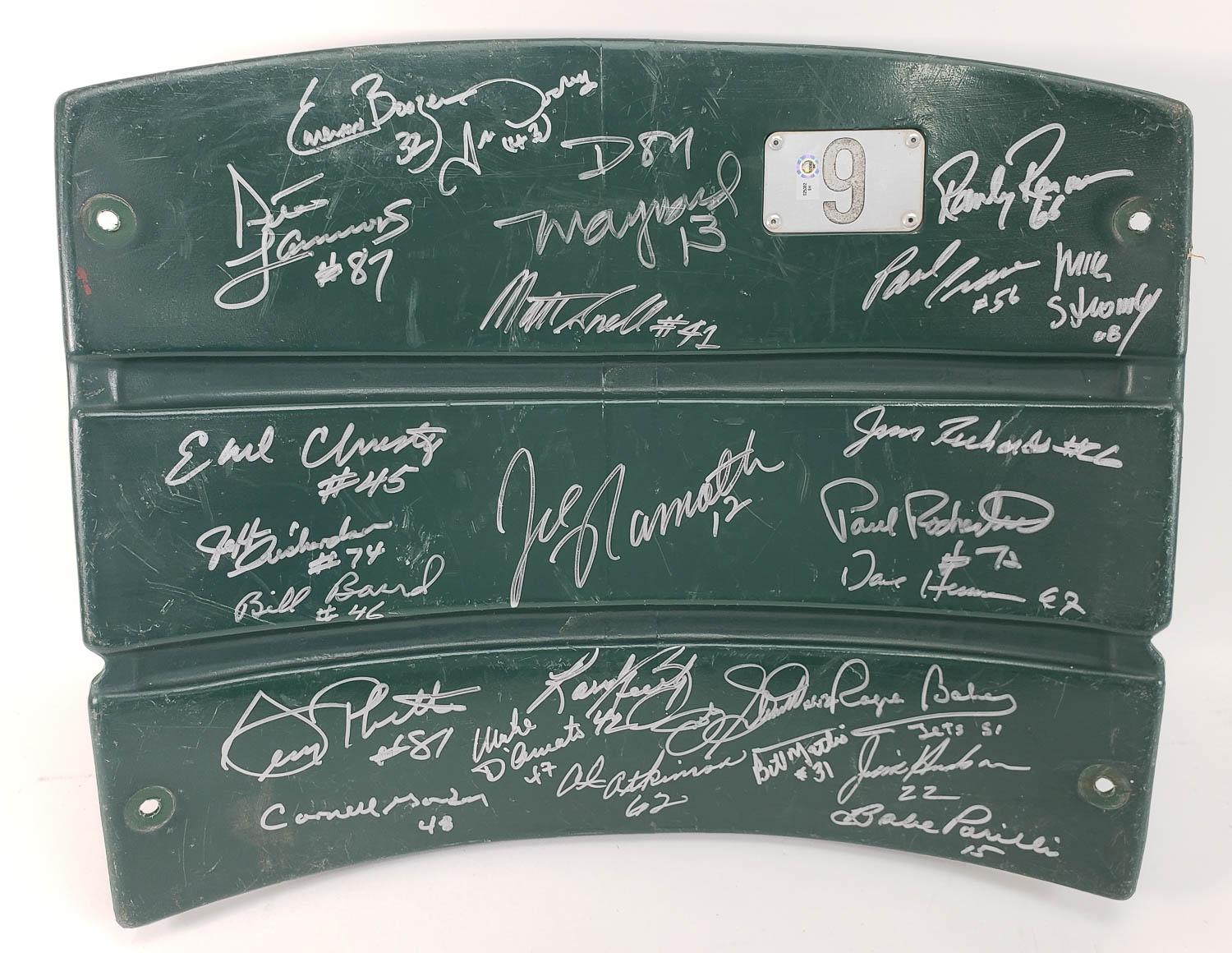 1969 New York Jets Super Bowl Champion Team (x25 w/ Joe Namath) Signed Shea Stadium Seatback (JSA LOA)