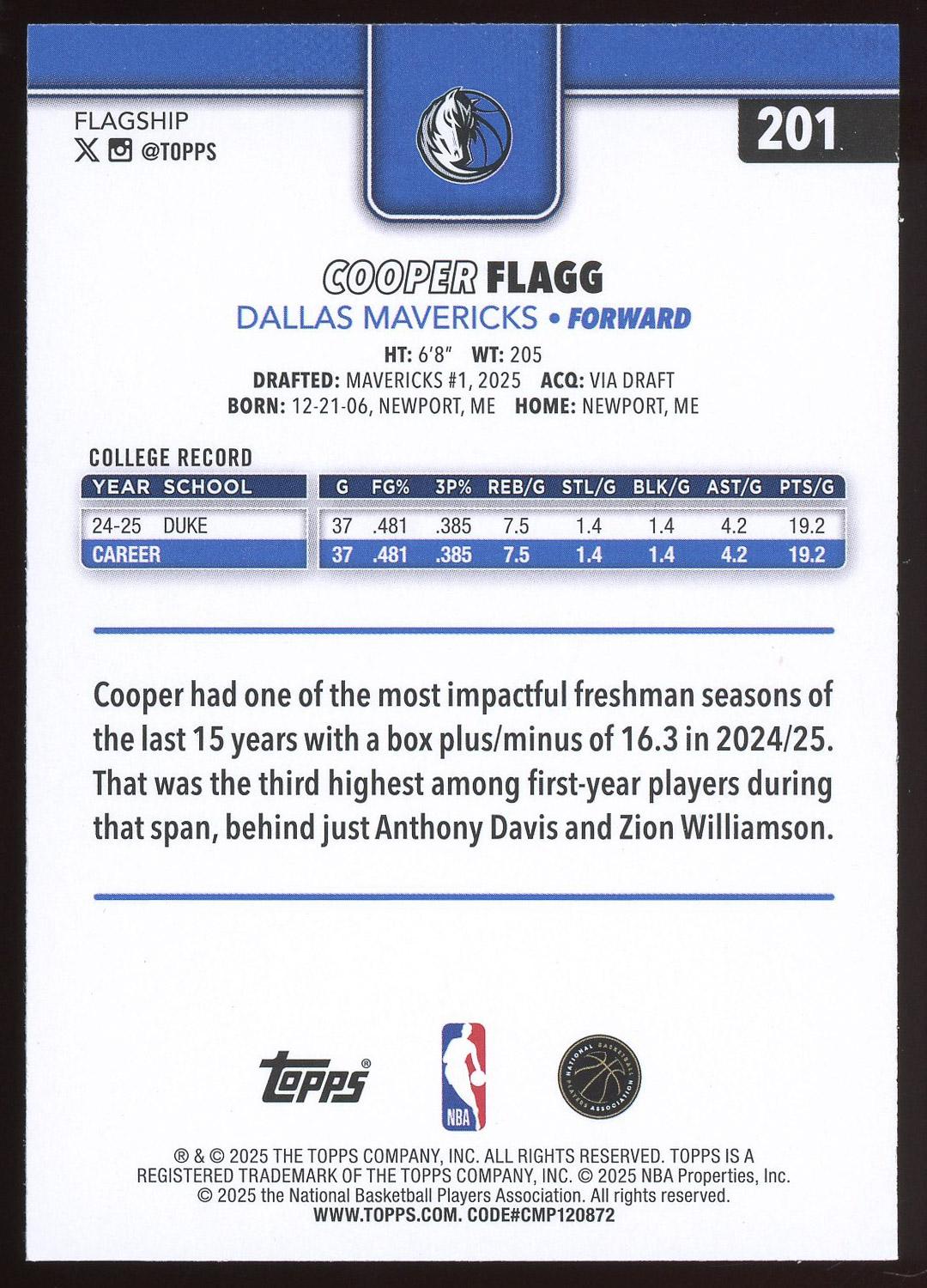 Cooper Flagg 2025 Topps Flagship Rookie Card #201