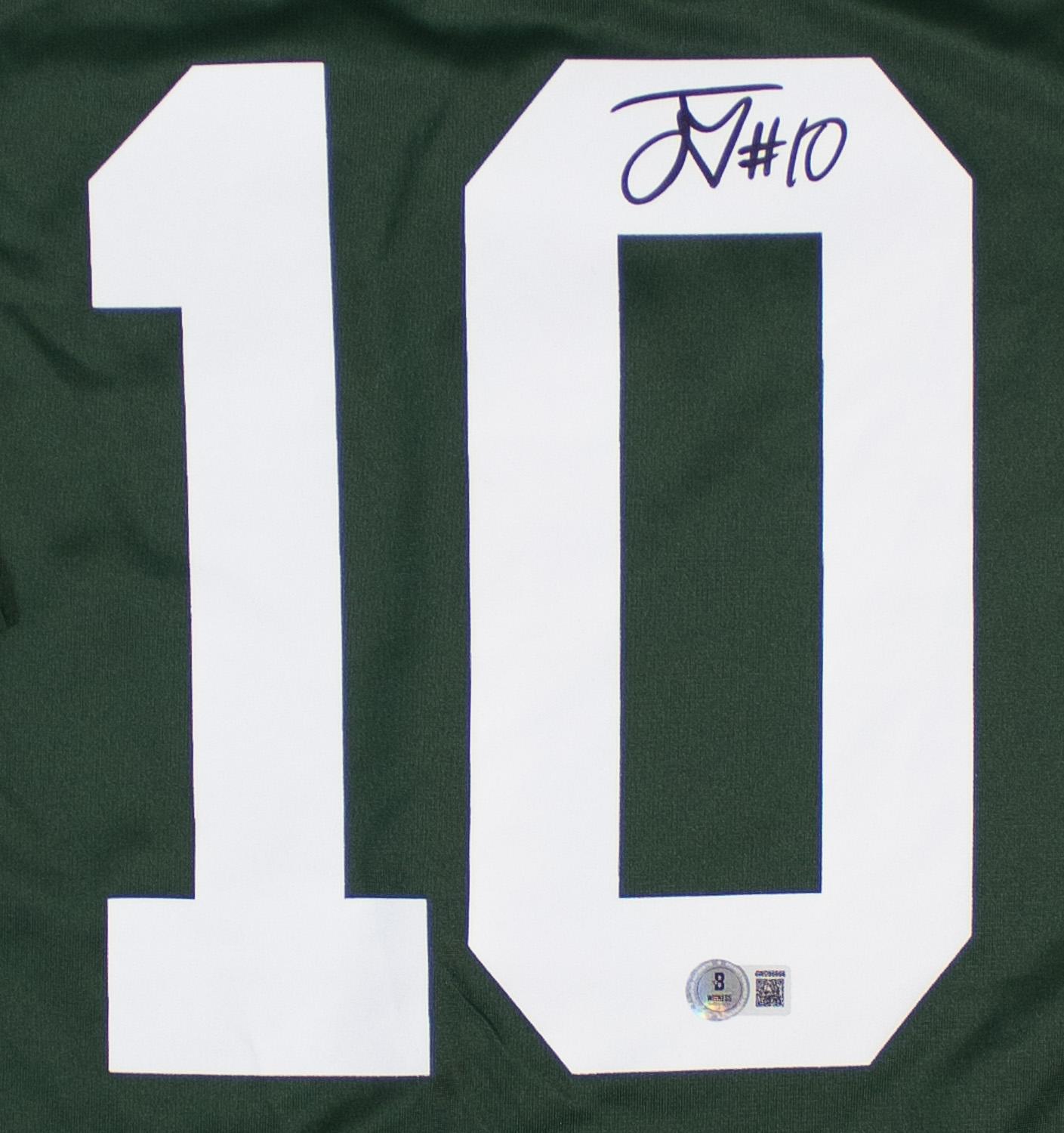 This autographed Nike Engineered NFL Replica Game jersey has been personally hand-signed by Jordan Love of the Green Bay Packers. This autograph is certified by Beckett Authentication Services (BAS) Witness Certification. That means that a Beckett representative was present when this item was signed. It comes with the numbered authentication hologram with a QR code that verifies the authentication on the Beckett website.