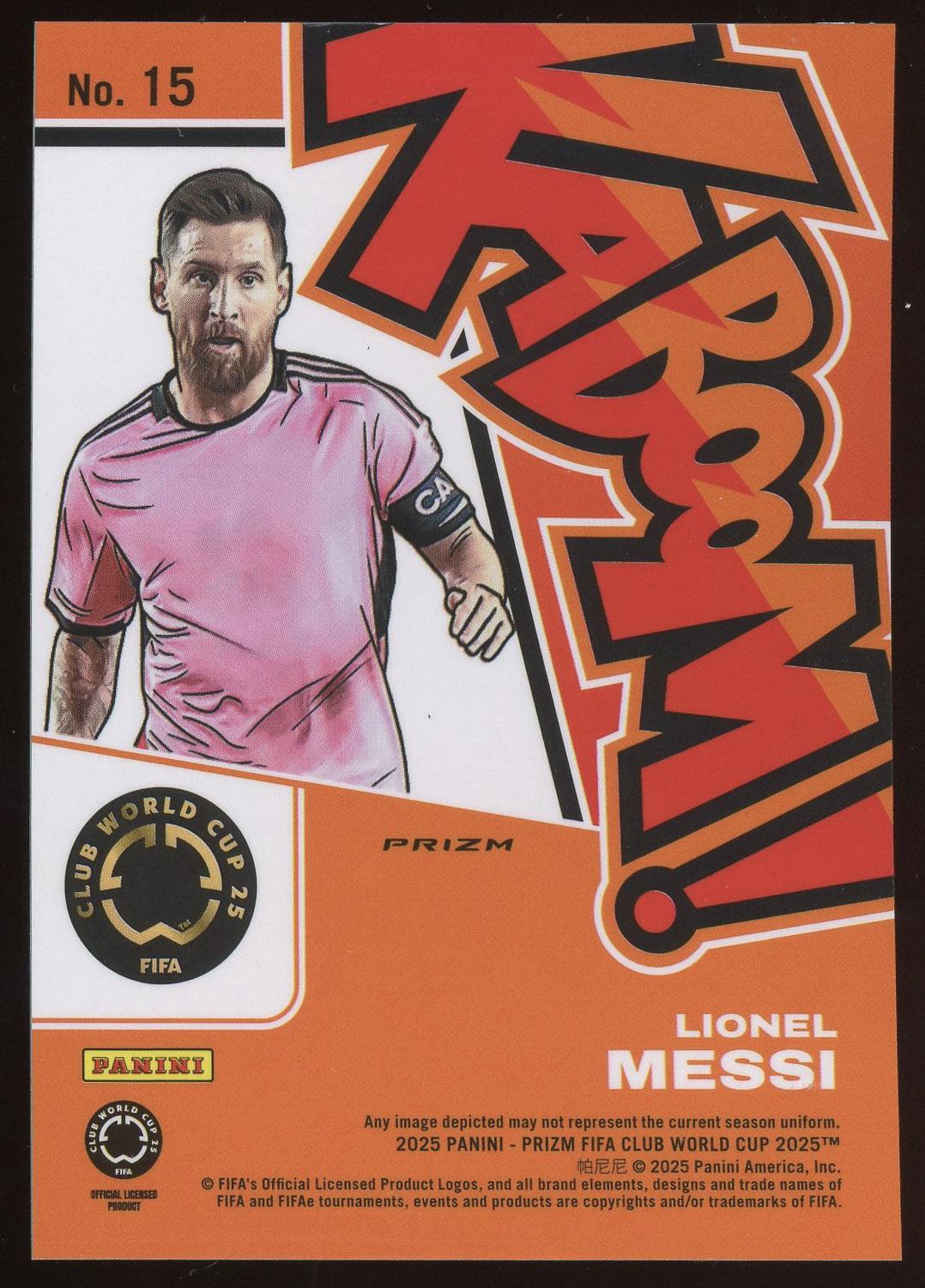 Lionel Messi 2025 Panini Prizm FIFA Club World Cup Kaboom Card #15. Please see pictures for details on the condition of this card.