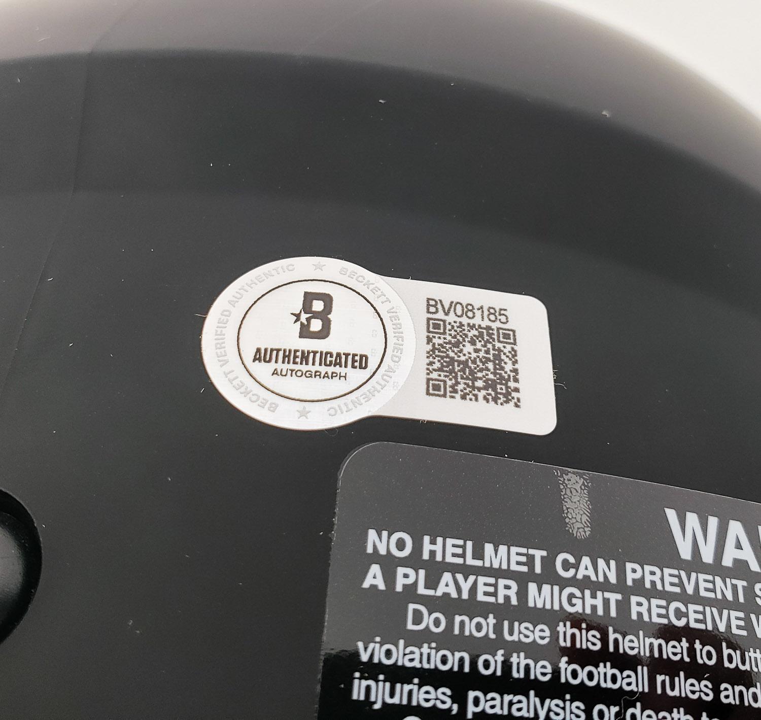 This autographed full size Riddell Authentic Speed helmet has been personally hand-signed by Herschel Walker of the Philadelphia Eagles. This autograph is certified by Beckett Authentication Services. It comes with the numbered authentication hologram with a QR code that verifies the authentication on the Beckett website.
