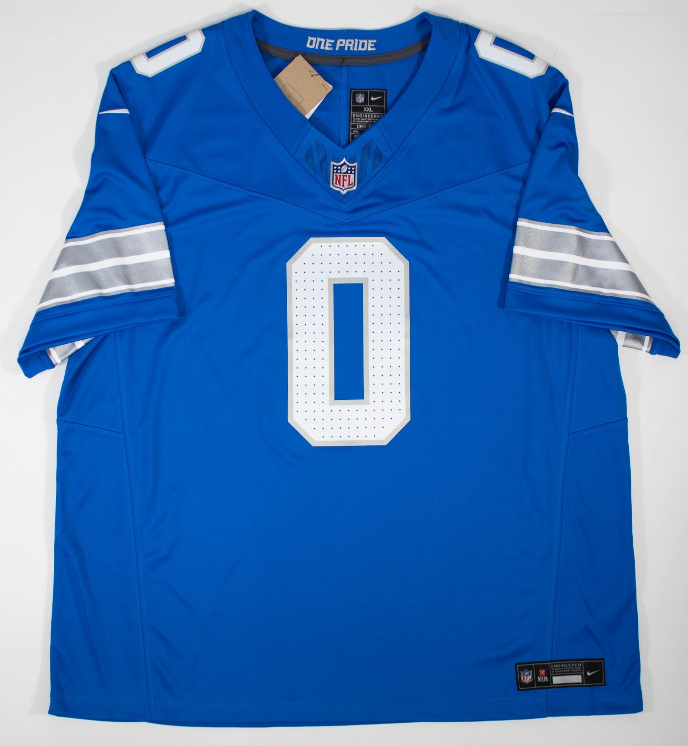 This autographed Nike NFL Replica jersey has been personally hand-signed by Jahmyr Gibbs of the Detroit Lions. This autograph is certified by Fanatics. It comes with the numbered hologram which can be verified on Fanatics.com.