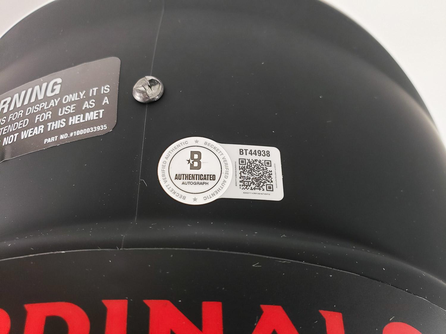 This autographed full size helmet has been personally hand-signed by DeAndre Hopkins of the Arizona Cardinals. This autograph is certified by Beckett Authentication Services (BAS) Certification. It comes with the numbered authentication hologram with a QR code that verifies the authentication on the Beckett website.