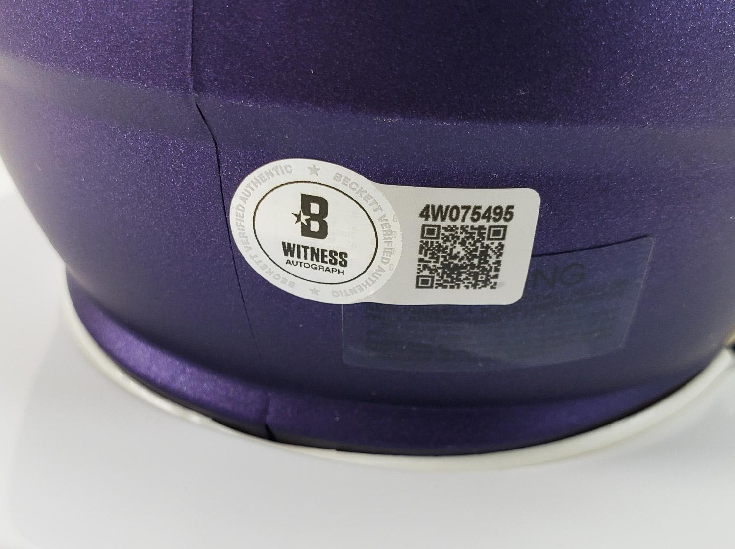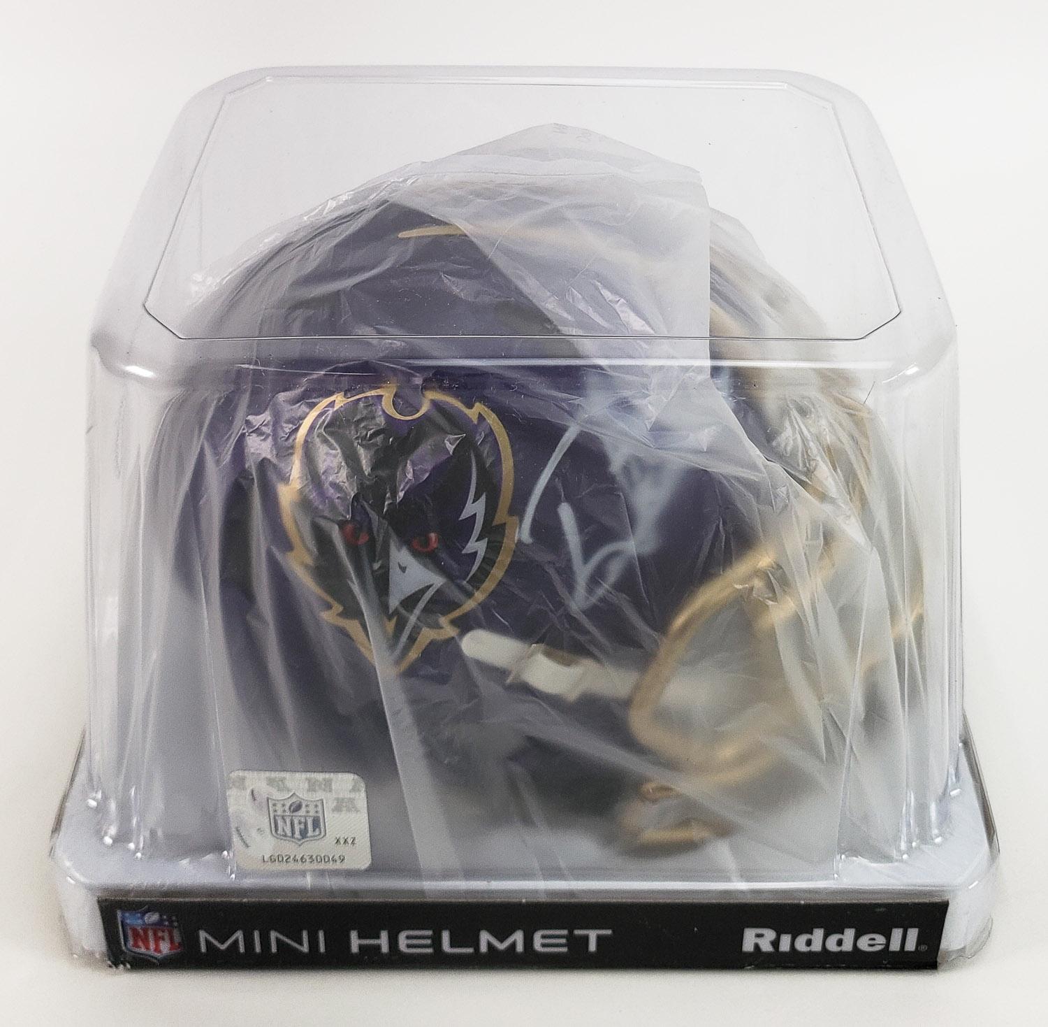 This autographed Riddell Alternate Speed mini helmet has been personally hand-signed by Derrick Henry of the Baltimore Ravens. This autograph is certified by Beckett Authentication Services (BAS) Witness Certification. That means that a Beckett representative was present when this item was signed. It comes with the numbered authentication hologram with a QR code that verifies the authentication on the Beckett website.