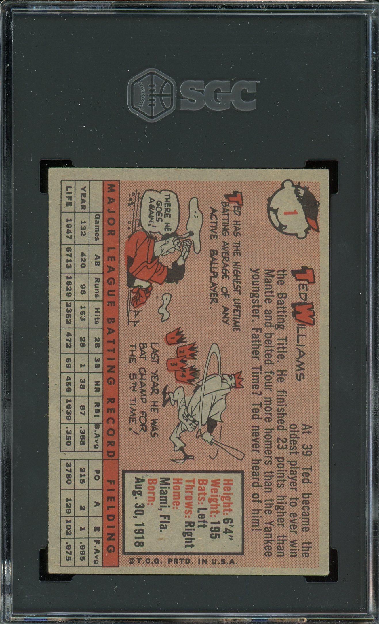 Ted Williams 1958 Topps Card #1 SGC 6
