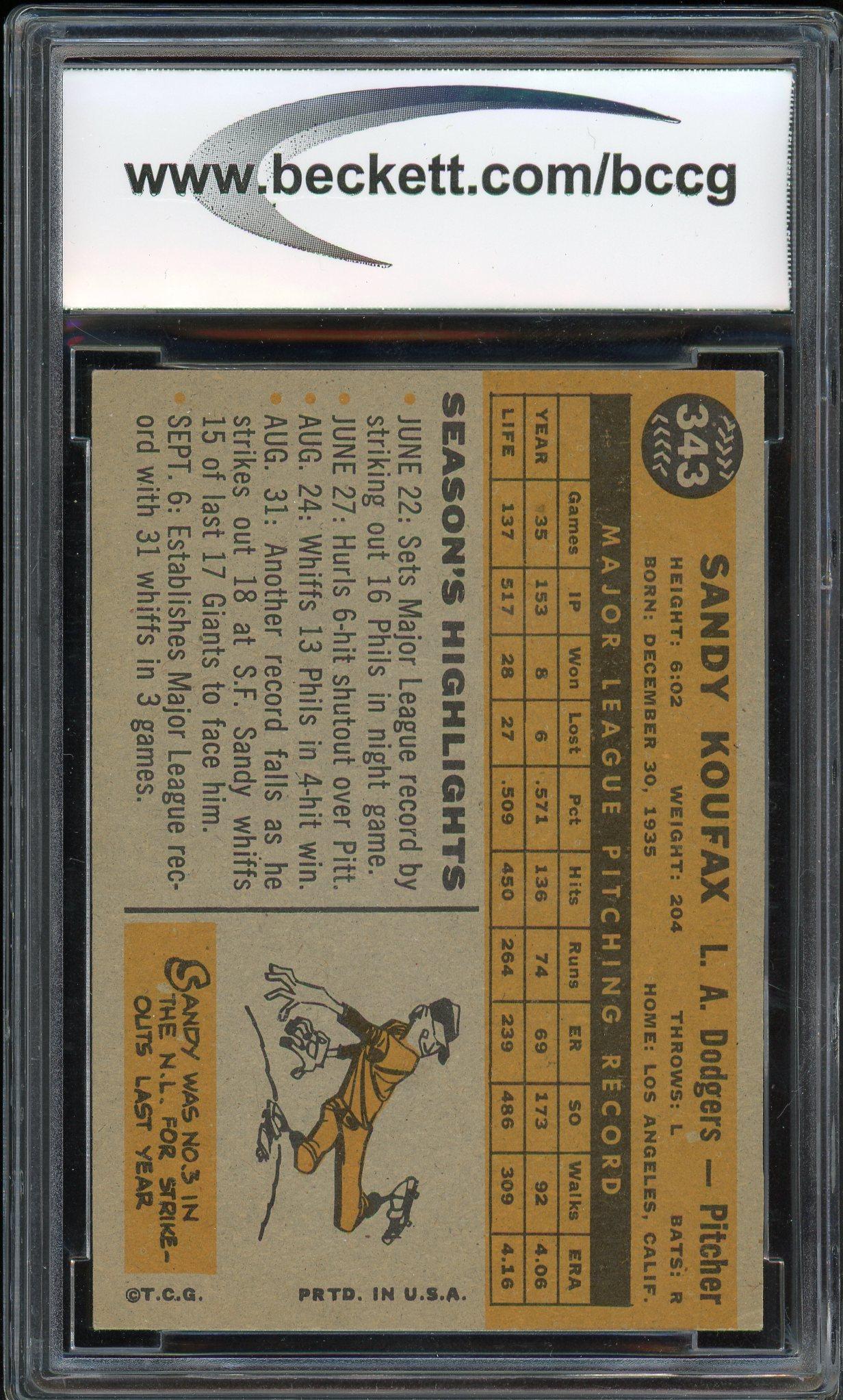 Sandy Koufax 1960 Topps Card #343 Encapsulated