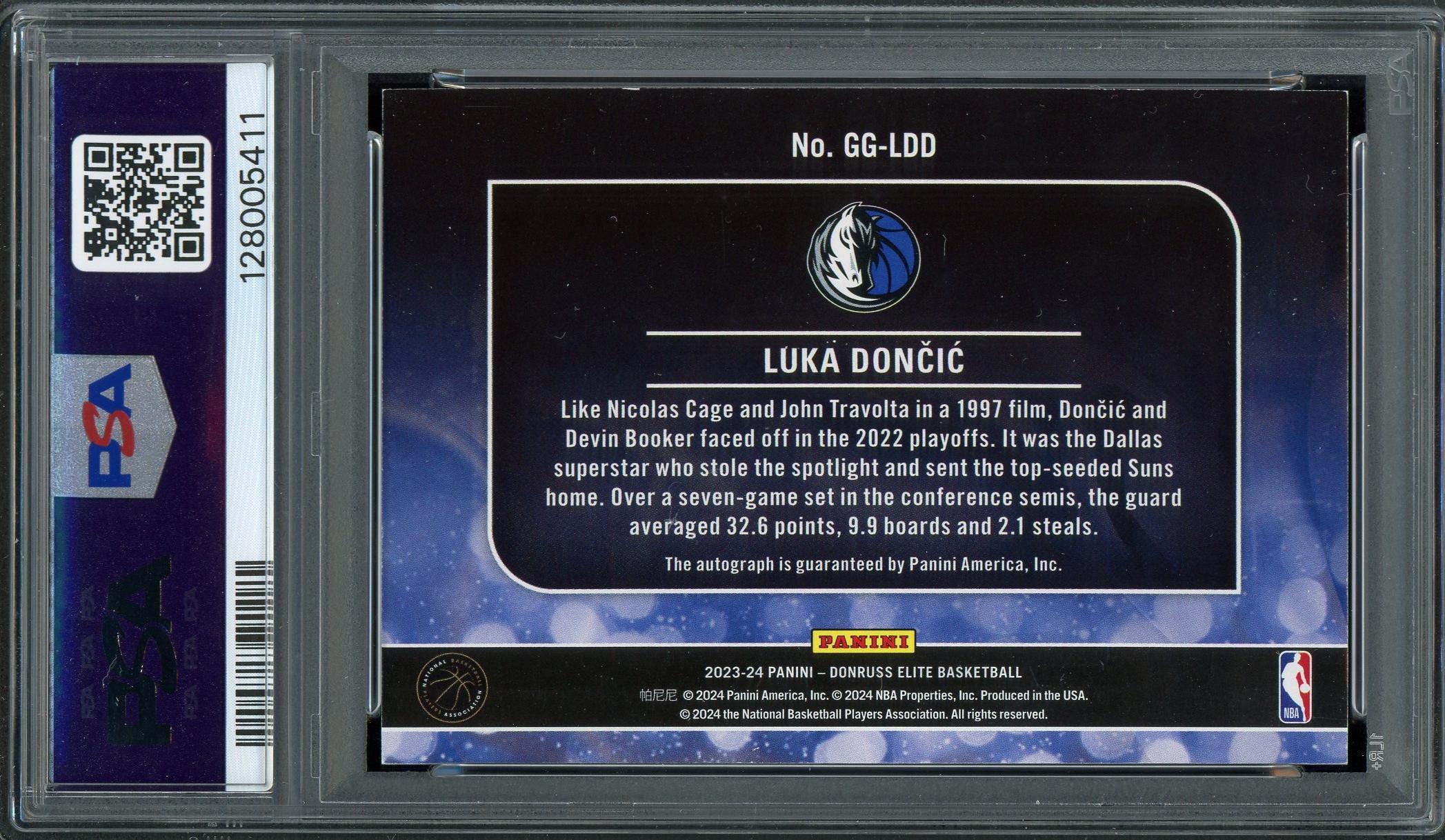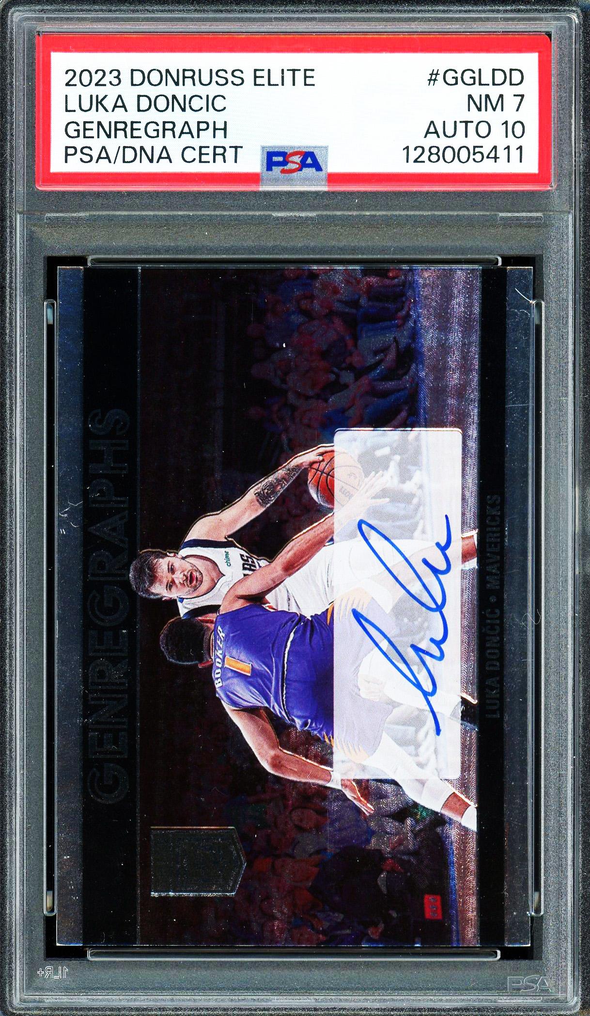 Luka Doncic 2023 Panini Donruss Elite Genregraph Autograph Card PSA 7 Auto 10 POP 1, 1 Higher!