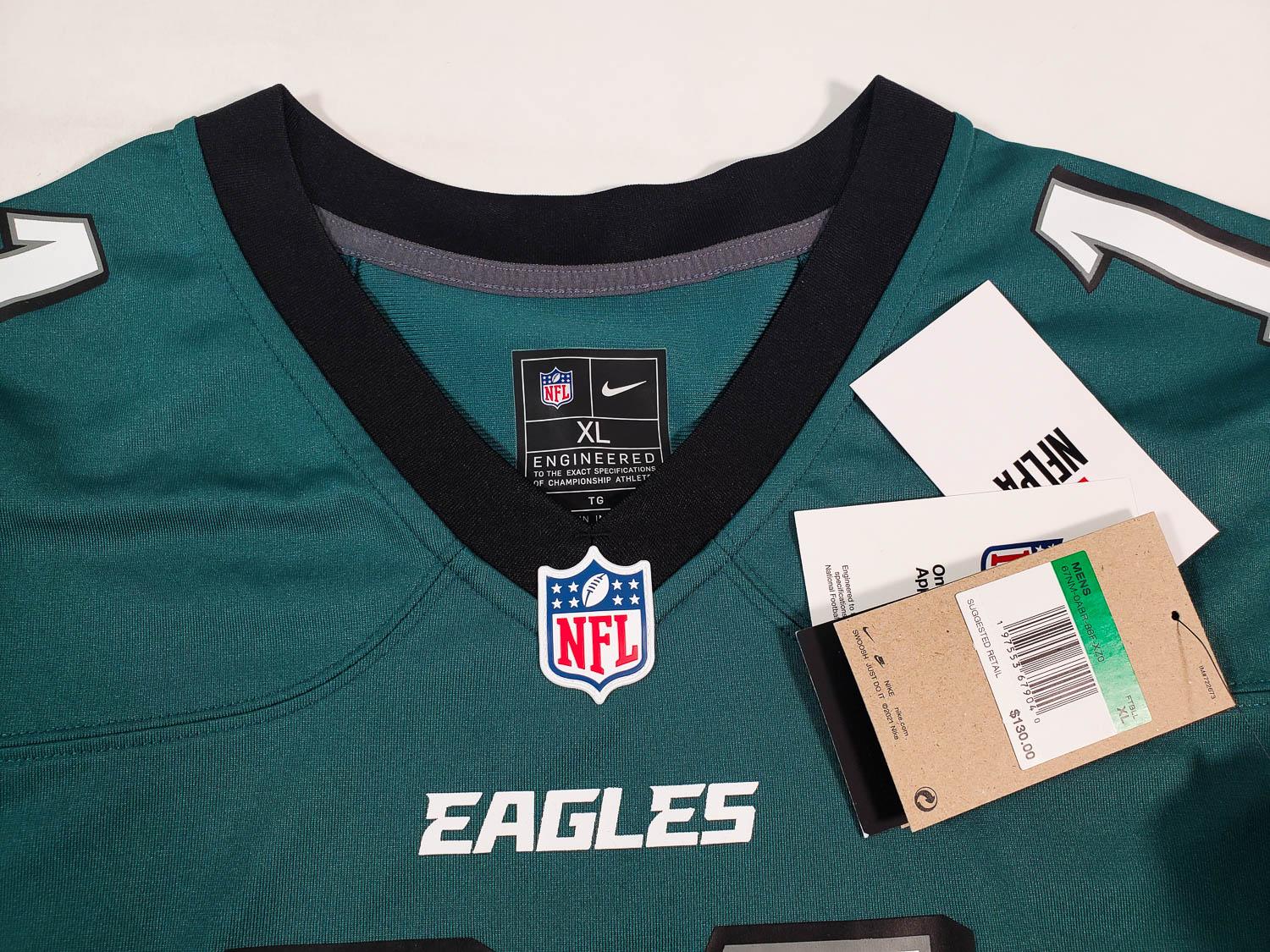 This autographed Nike Engineered NFL Replica jersey has been personally hand-signed by AJ Brown of the Philadelphia Eagles. This autograph is certified by Beckett Authentication Services (BAS) Witness Certification. That means that a Beckett representative was present when this item was signed. It comes with the numbered authentication hologram with a QR code that verifies the authentication on the Beckett website.