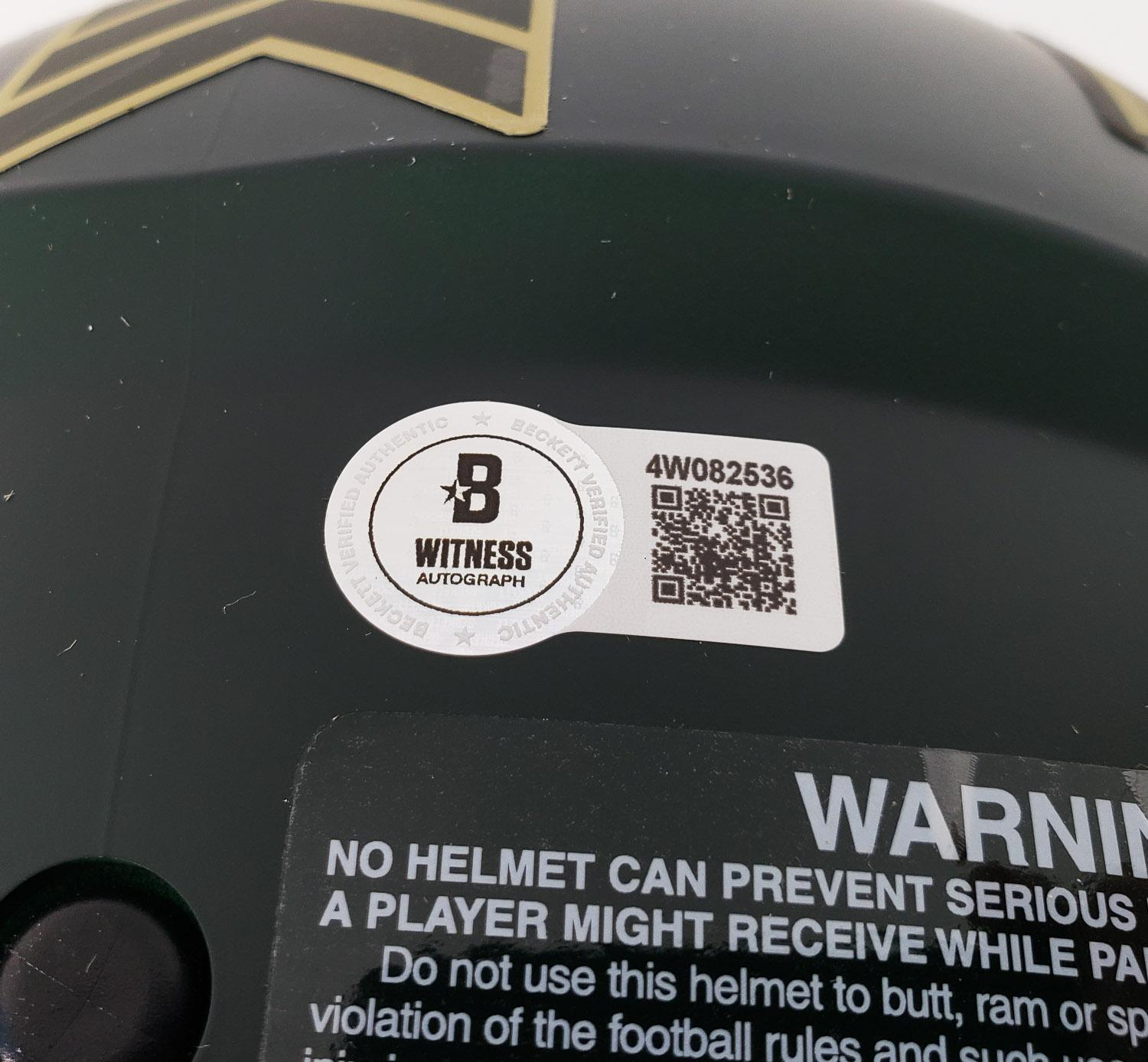 This autographed full size Riddell Authentic Speed helmet has been personally hand-signed by Josh Allen of the Buffalo Bills. This autograph is certified by Beckett Authentication Services (BAS) Witness Certification. That means that a Beckett representative was present when this item was signed. It comes with the numbered authentication hologram with a QR code that verifies the authentication on the Beckett website.