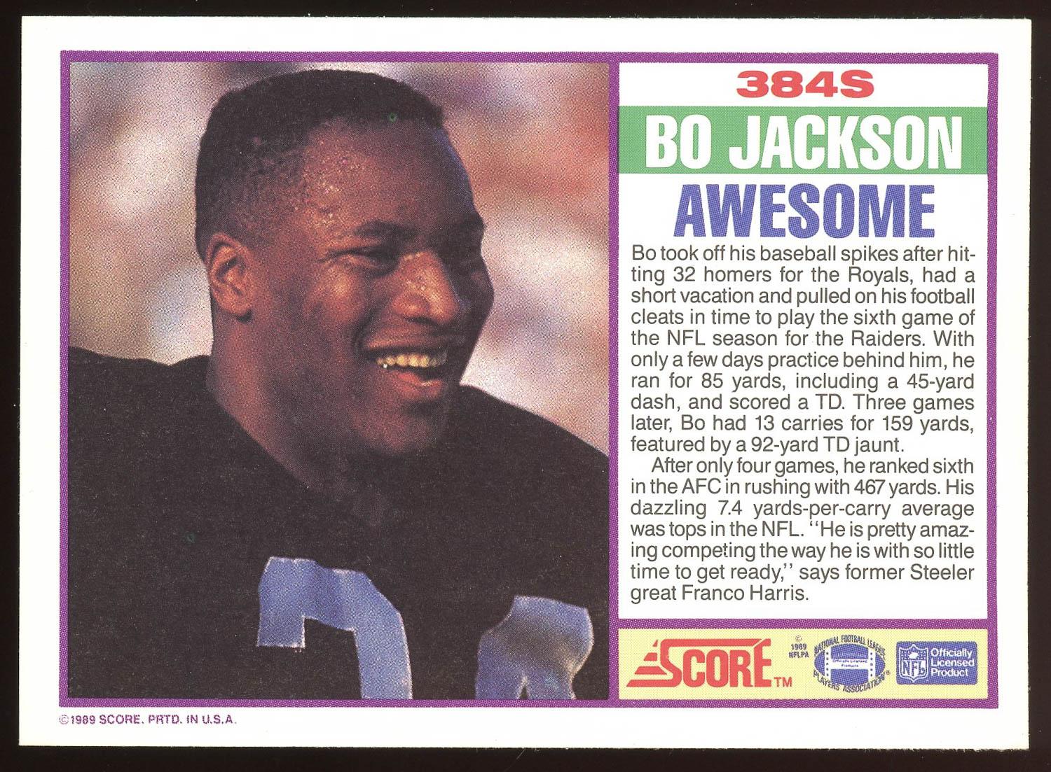 Bo Jackson 1989 Score Card #384
