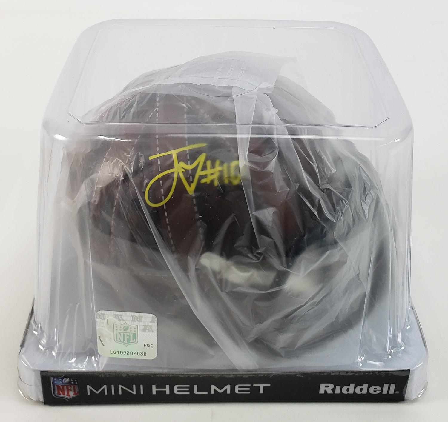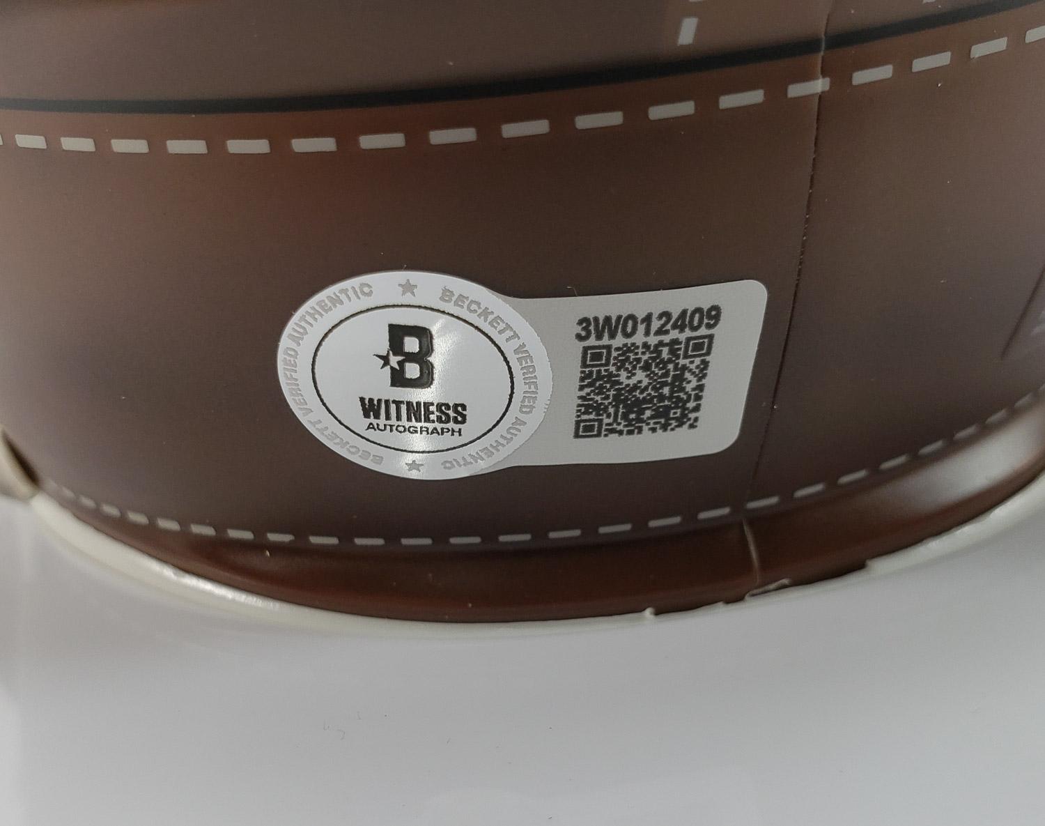 This autographed Riddell Speed mini helmet has been personally hand-signed by Jordan Love of the Green Bay Packers. This autograph is certified by Beckett Authentication Services (BAS) Witness Certification. That means that a Beckett representative was present when this item was signed. It comes with the numbered authentication hologram with a QR code that verifies the authentication on the Beckett website. Stock images are used for this listing. The item you will receive will be of equal quality to the one pictured. The signature location may vary slightly.