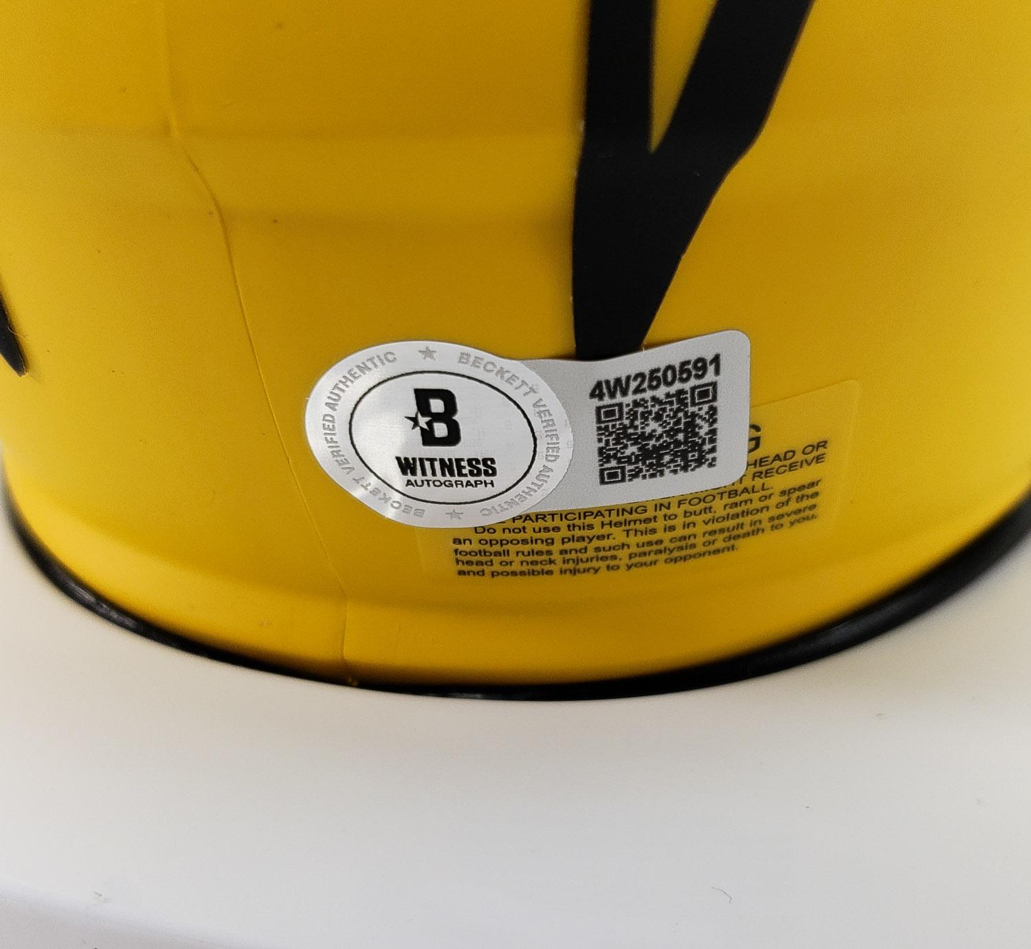 This autographed Riddell Speed mini helmet has been personally hand-signed by Ladainian Tomlinson of the San Diego Chargers. This autograph is certified by Beckett Authentication Services (BAS) Witness Certification. That means that a Beckett representative was present when this item was signed. It comes with the numbered authentication hologram with a QR code that verifies the authentication on the Beckett website. Stock images are used for this listing. The item you will receive will be of equal quality to the one pictured. The signature location may vary slightly.