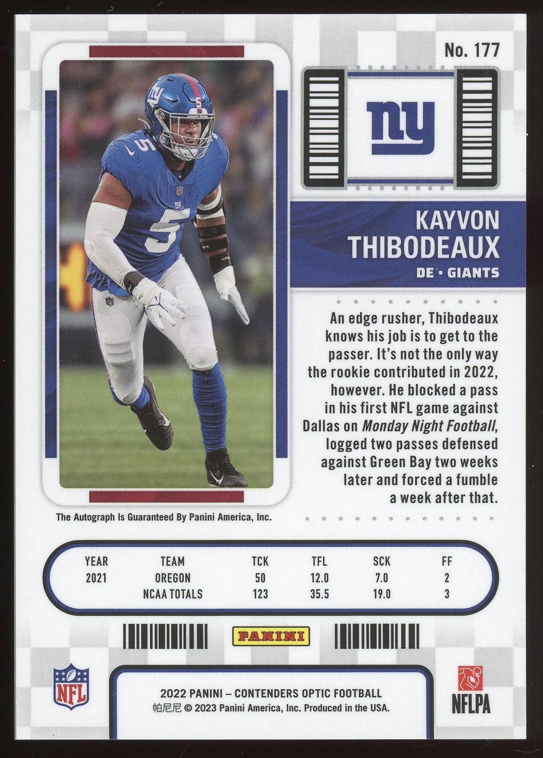 Kayvon Thibodeaux 2022 Panini Contenders Optic Rookie Ticket Autograph Card