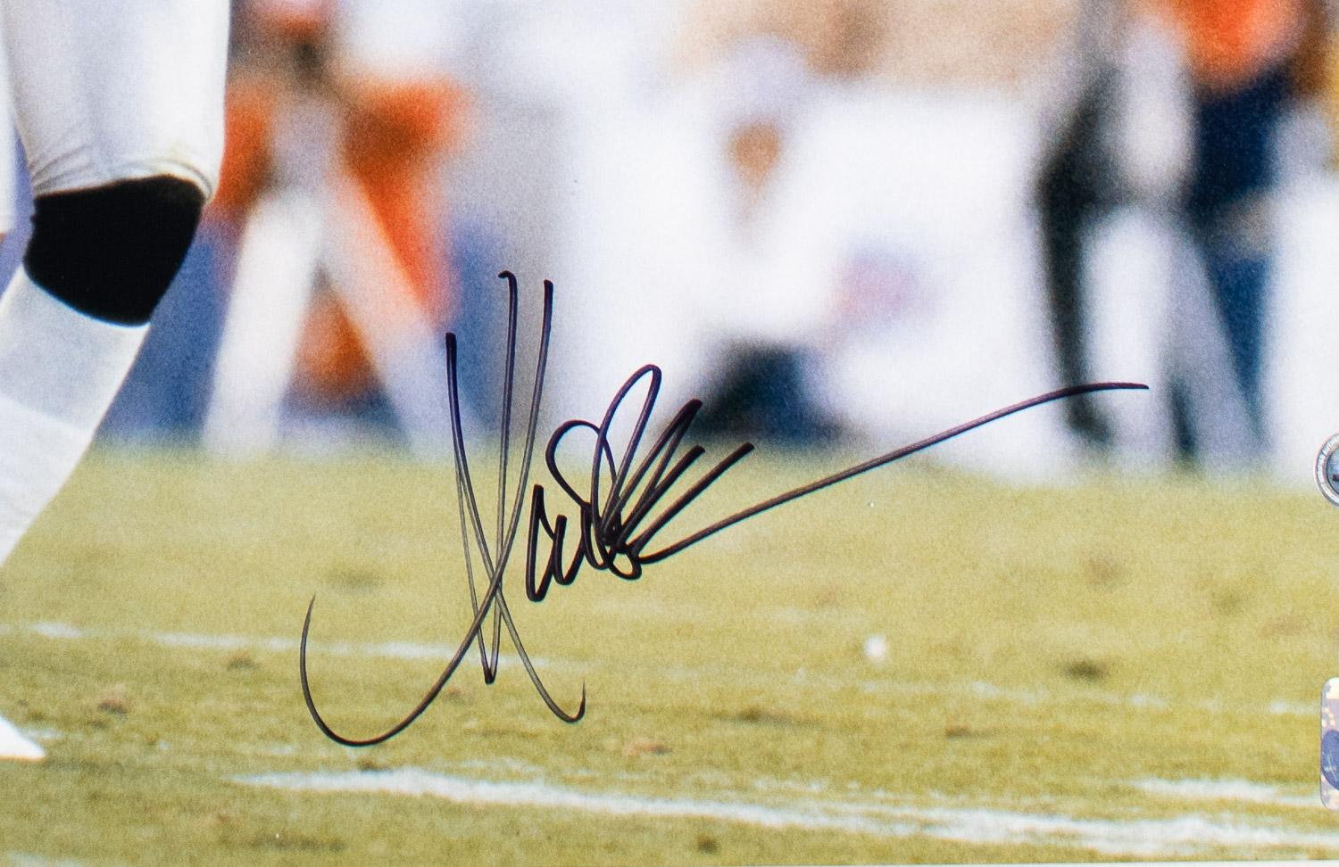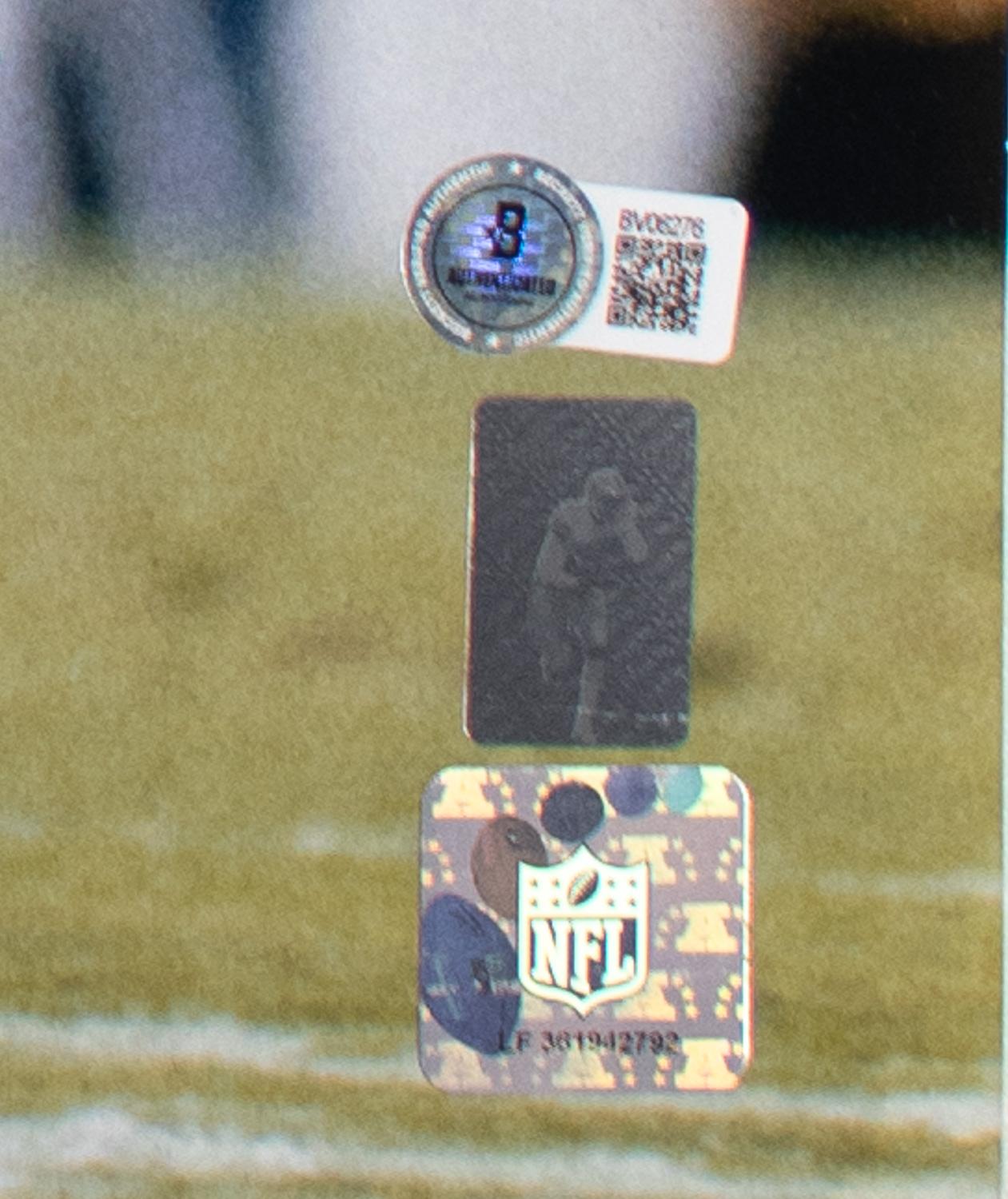 This autographed 16x20 photo has been personally hand-signed by Marcus Allen of the Oakland Raiders. This autograph is certified by Beckett Authentication Services (BAS) Certification. It comes with the numbered authentication hologram with a QR code that verifies the authentication on the Beckett website.