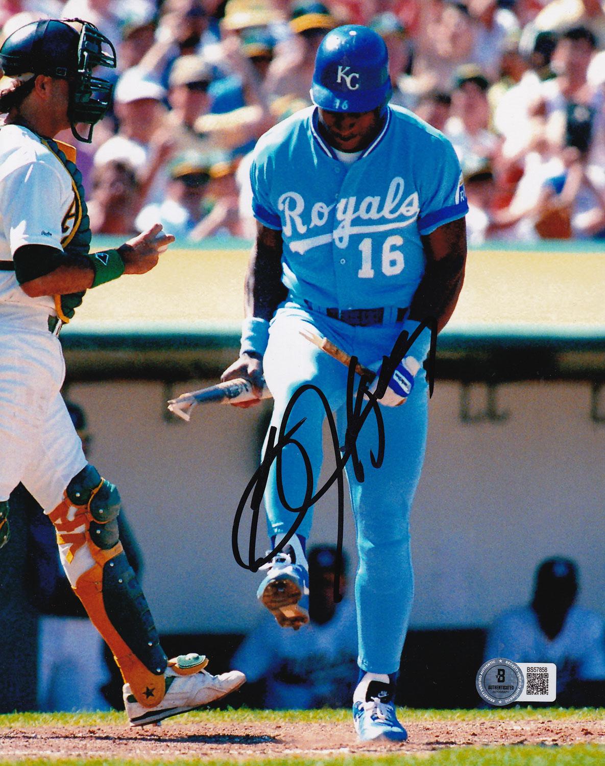 This autographed 8x10 photo has been personally hand-signed by Bo Jackson of the Kansas City Royals. This autograph is certified by Beckett Authentication Services (BAS) Certification. It comes with the numbered authentication hologram with a QR code that verifies the authentication on the Beckett website.