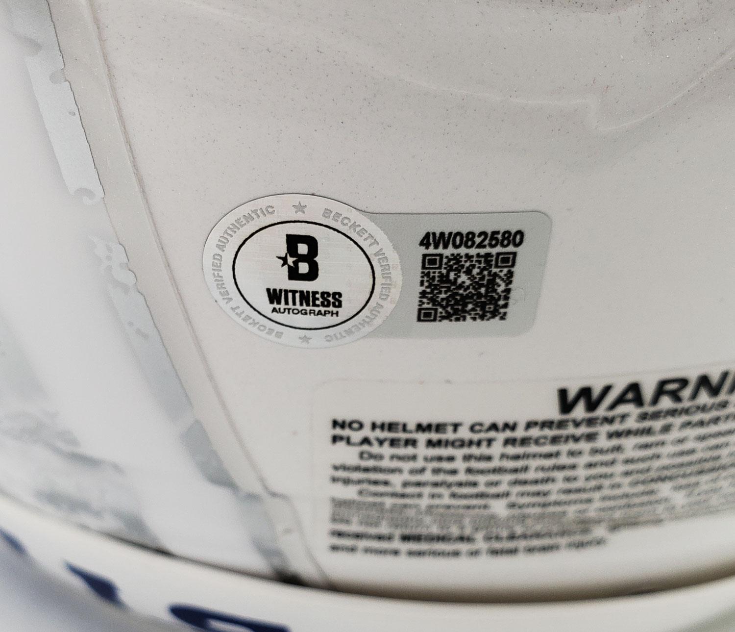 This autographed full size helmet has been personally hand-signed by Josh Allen "24 NFL MVP" of the Buffalo Bills. This autograph is certified by Beckett Authentication Services (BAS) Witness Certification. That means that a Beckett representative was present when this item was signed. It comes with the numbered authentication hologram with a QR code that verifies the authentication on the Beckett website.