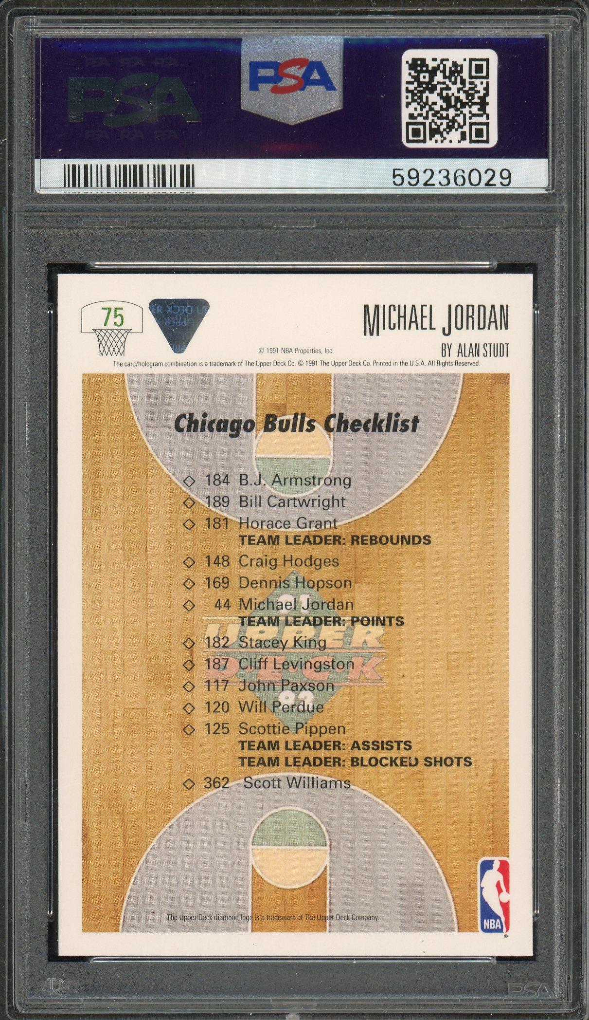 Michael Jordan 1991 Upper Deck Bulls Checklist Card #75 PSA Gem Mint 10!