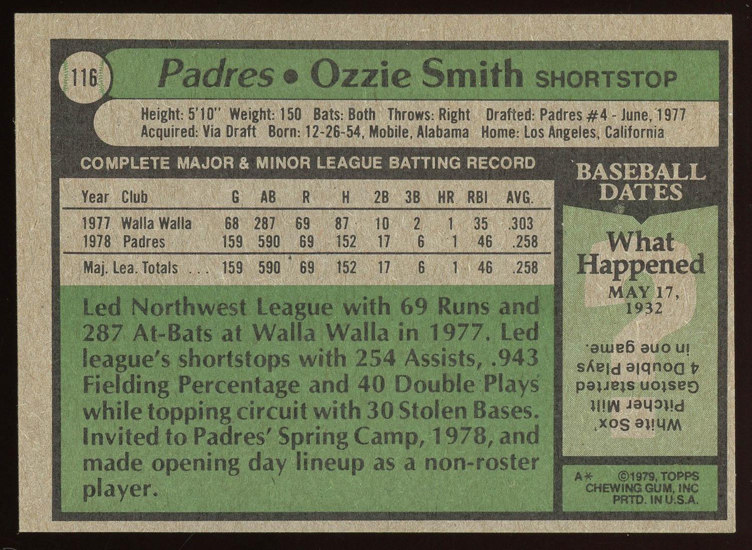 Ozzie Smith 1979 Topps Rookie Card #116. Please see pictures for details on the condition of this card.