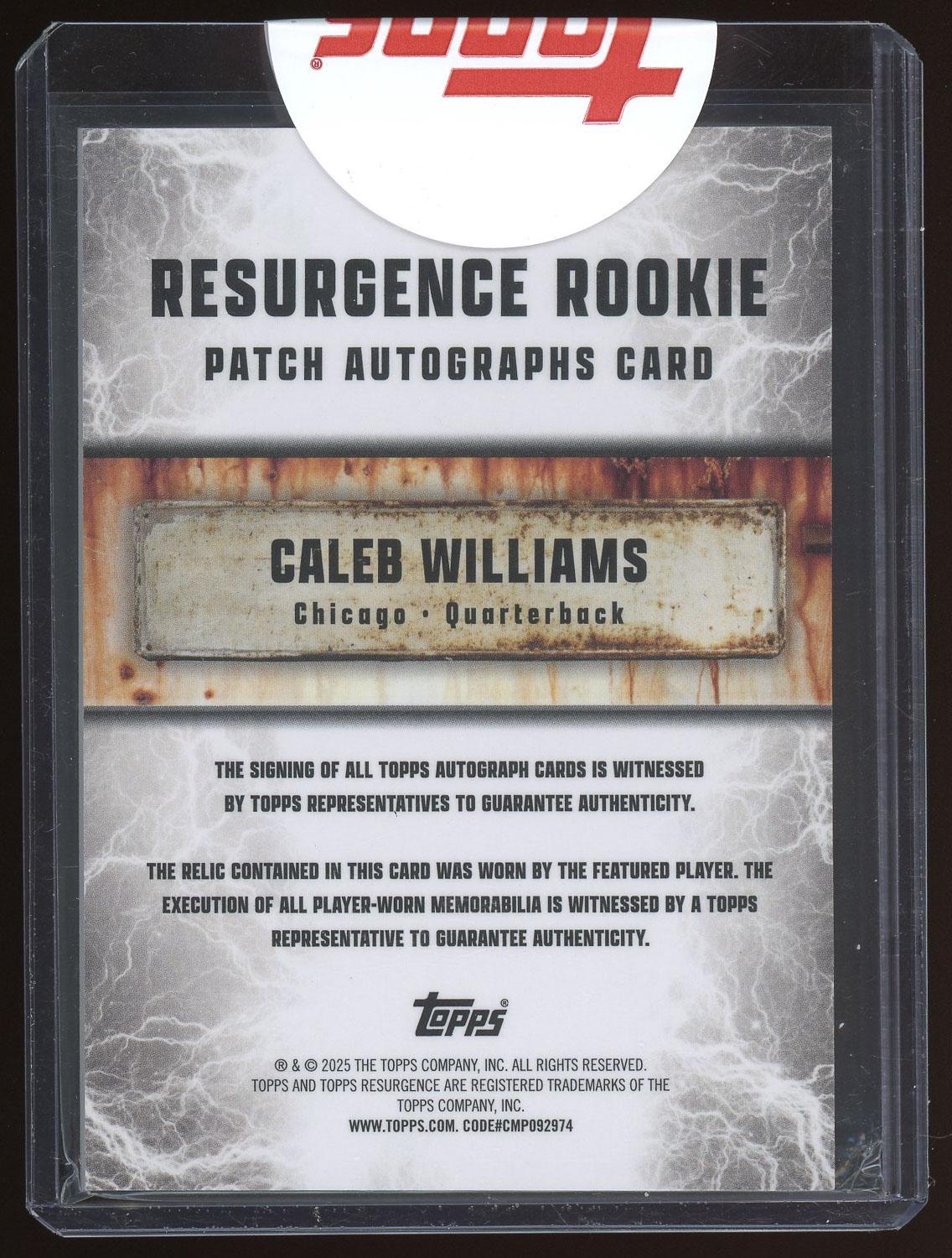 Caleb Williams 2024 Topps Resurgence Rookie Patch Autograph Card