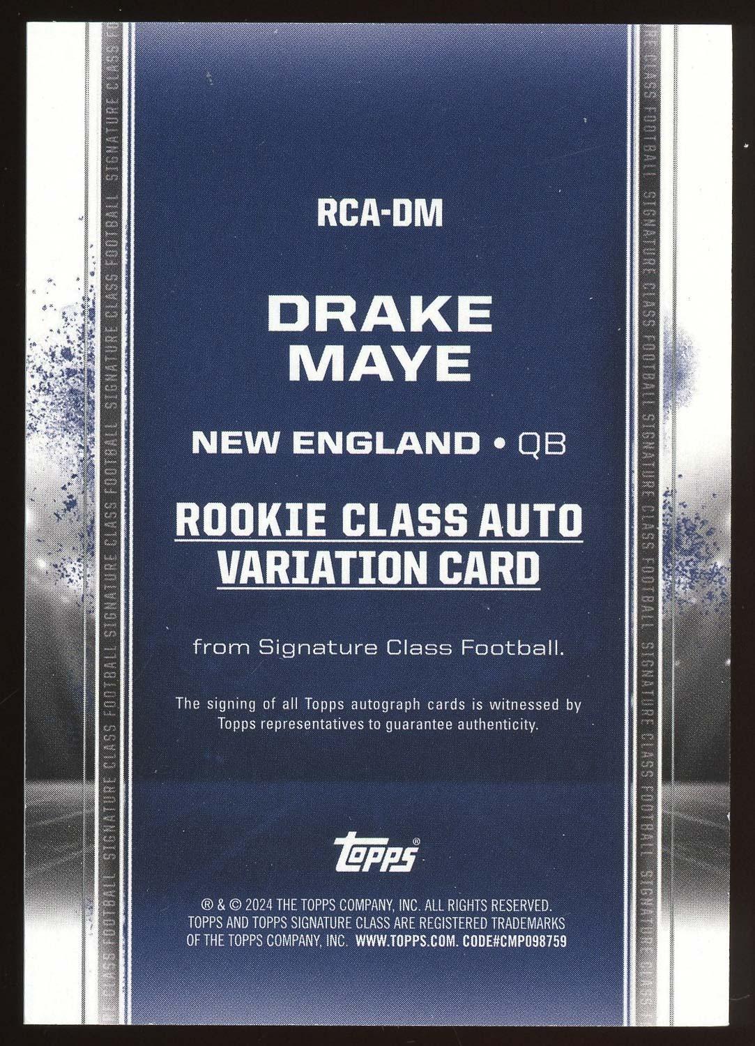 Drake Maye 2024 Topps Signature Class Variation Autograph Rookie Card