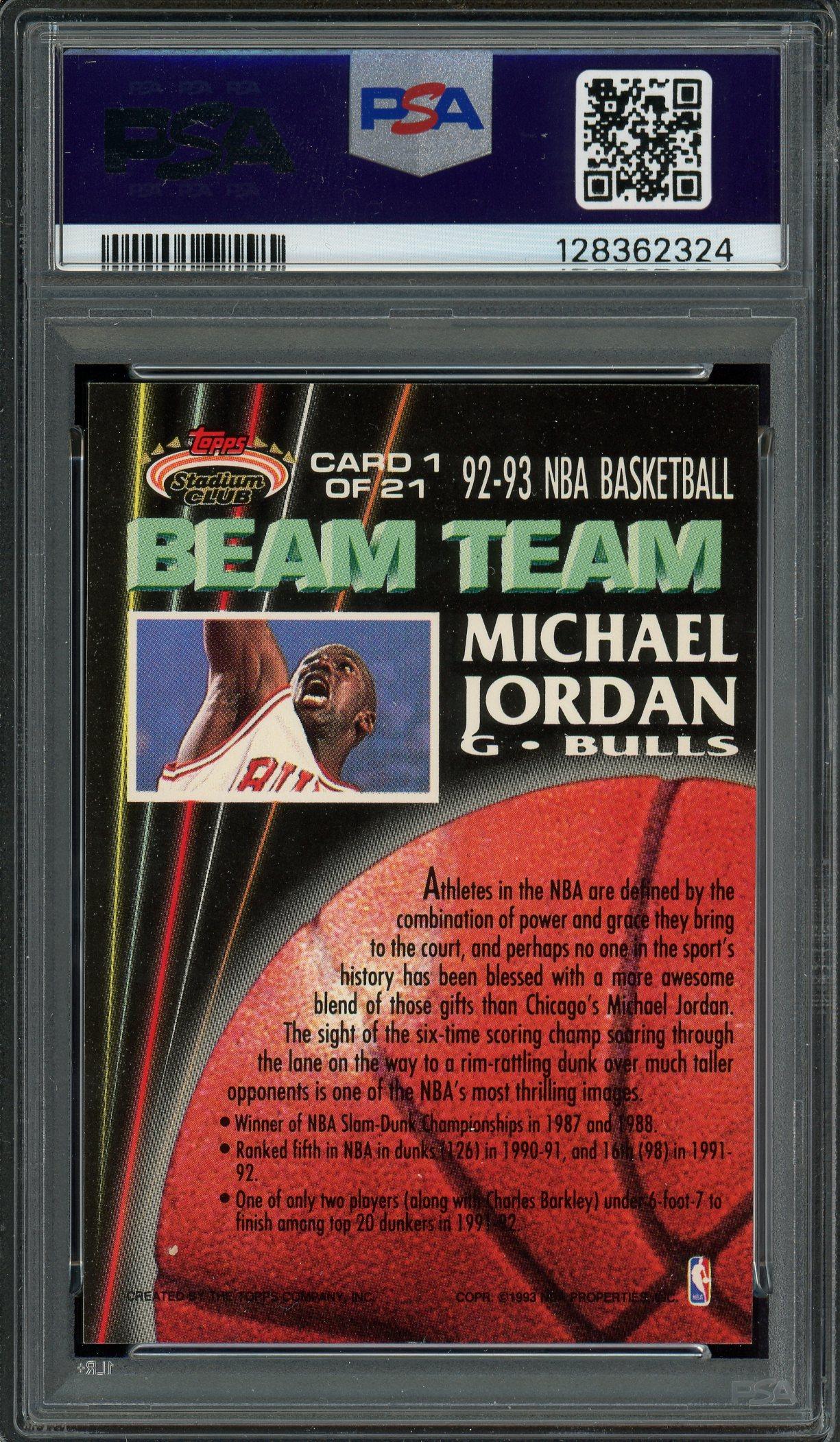 Michael Jordan 1992 Topps Stadium Club Beam Team Card #1 PSA 8