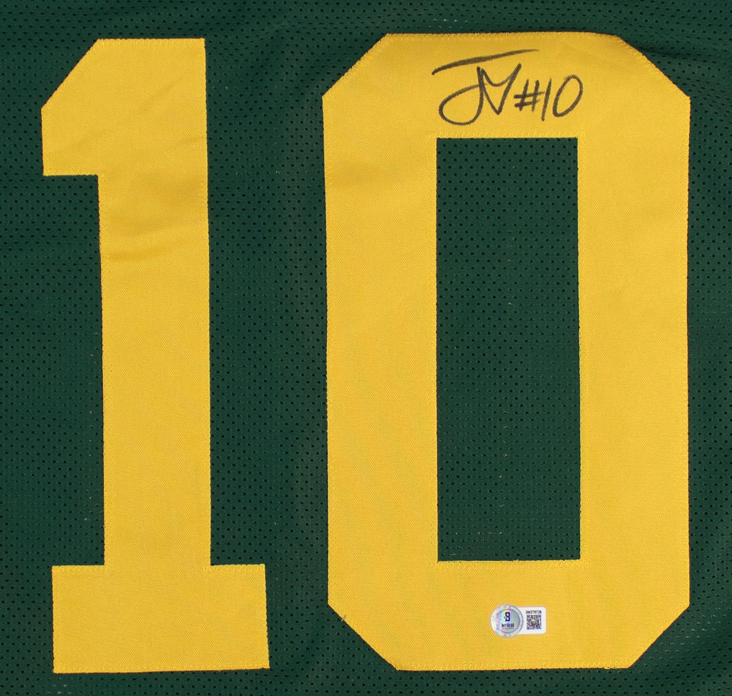 This autographed jersey has been personally hand-signed by Jordan Love of the Green Bay Packers. This autograph is certified by Beckett Authentication Services (BAS) Witness Certification. That means that a Beckett representative was present when this item was signed. It comes with the numbered authentication hologram with a QR code that verifies the authentication on the Beckett website.