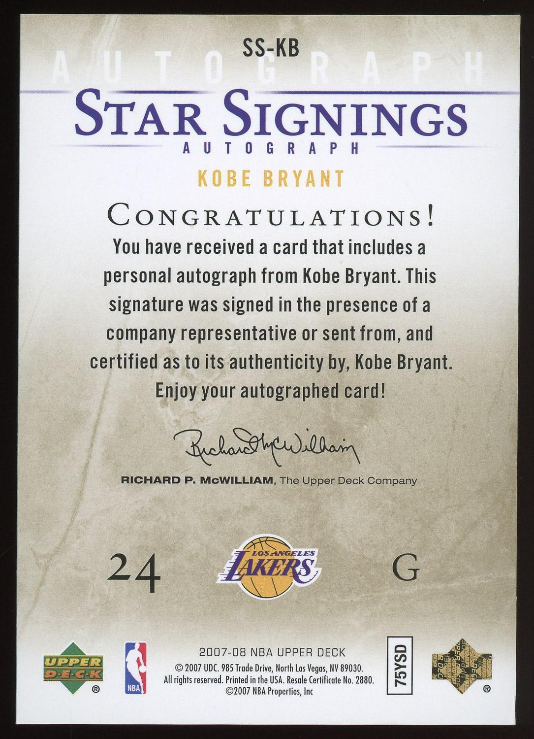 Kobe Bryant 2007 Upper Deck Star Signings Autograph Card 13/20!